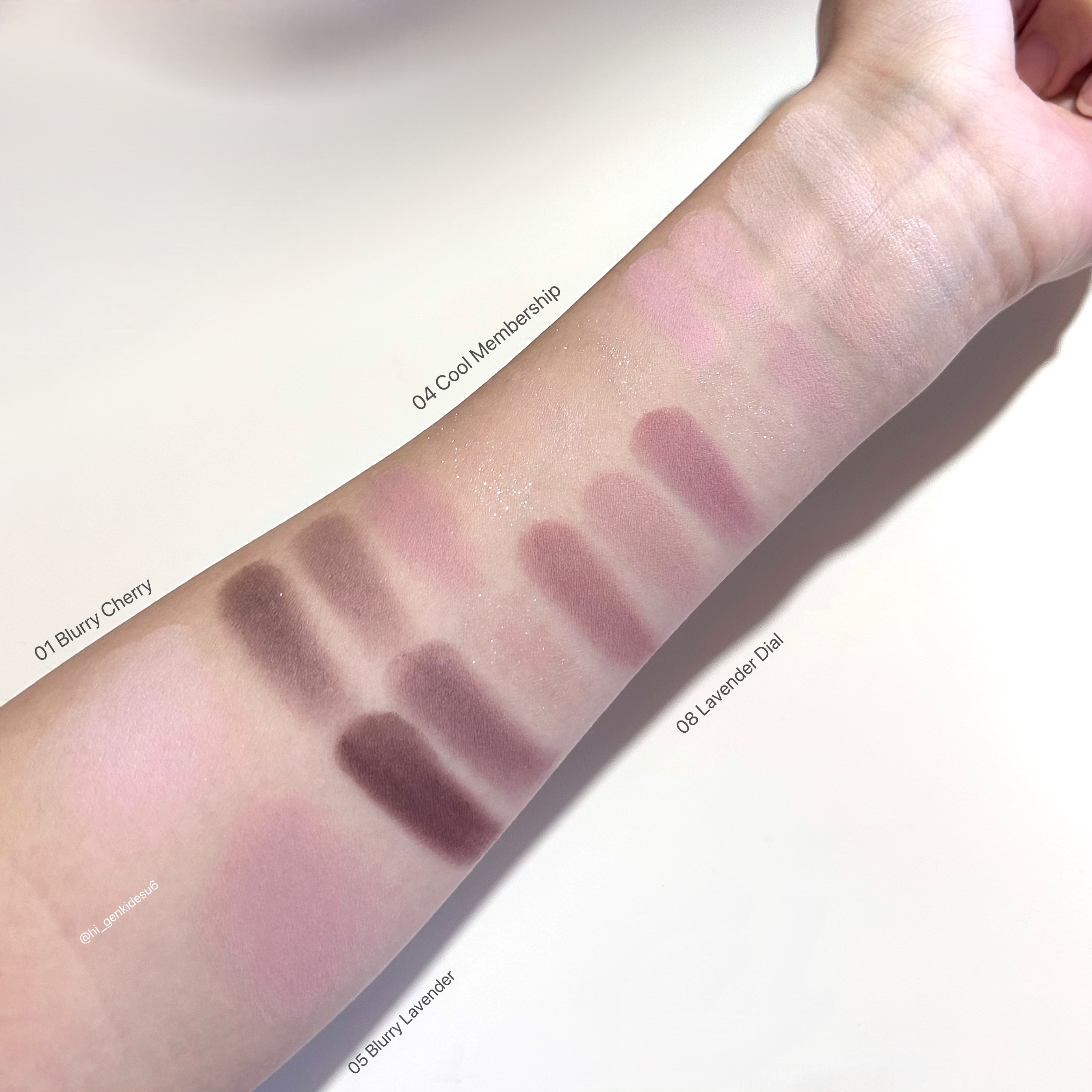 ぬるい温度のヌーディローズ。落ち着いた独特の雰囲気。公式写真だと青み寄りのローズピンクに見えましたが、私の肌だとアプリコットオレンジのような発色に。 清楚なラベンダーとミュートピンク。こちらは期待通りのクールトーンカラーでした! 白みのある発色で、塗った箇所がぱっと明るくなります。 簡単に統一感のあるメイクができてとっても優秀。色々な質感を試せますし、マルチに使用できるので1つでかなり活用度が高いパレットだと思います✨️
