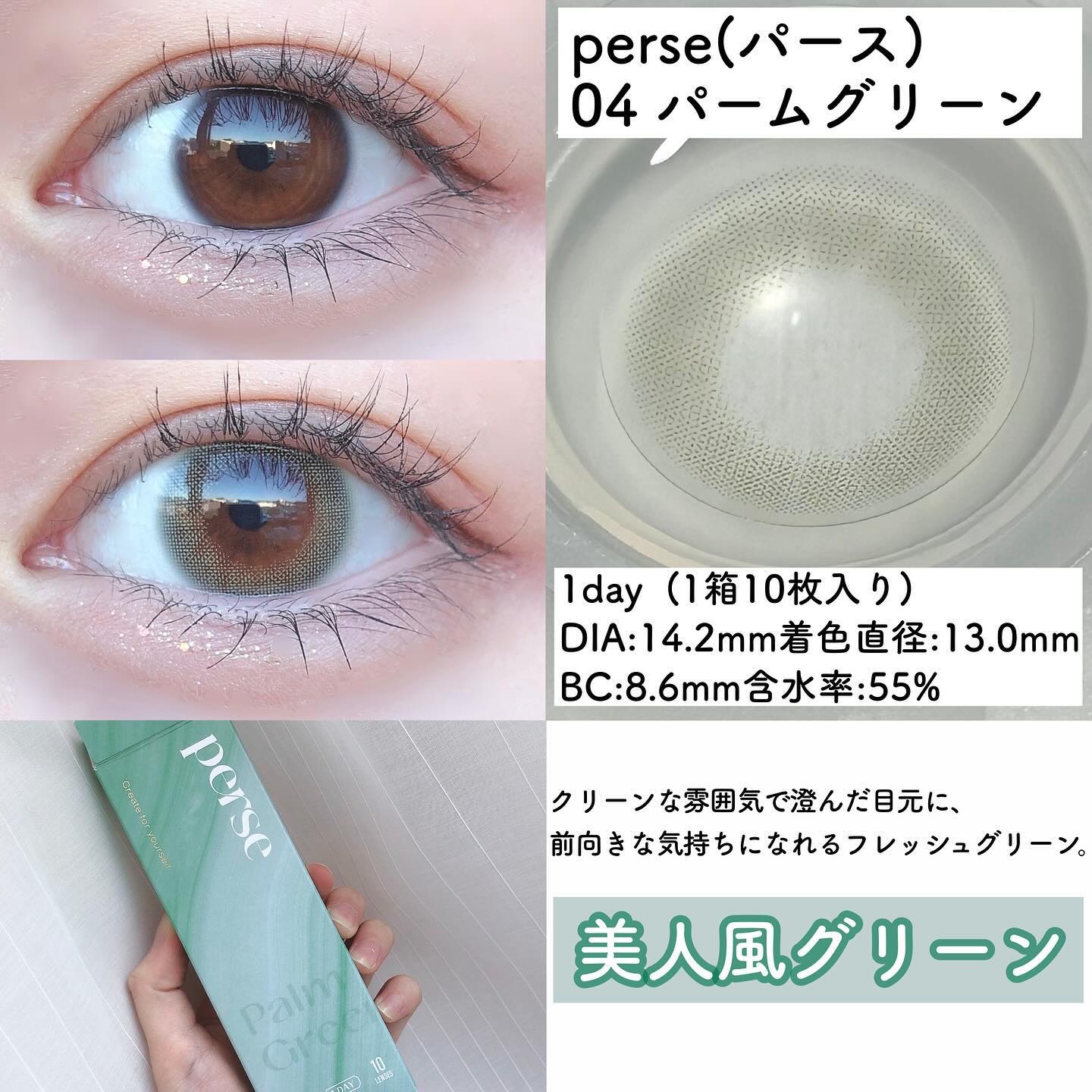 perse˚✦クリーンな雰囲気で澄んだ瞳ナチュラルハーフカラコン˖࣪⊹✔︎perse#パース¥1,705[リリーアンナ公式価格]✧PalmGreen#パームグリーン[DIA14.2|G.DIA13.0|B.C8.6|Water55%|1day...