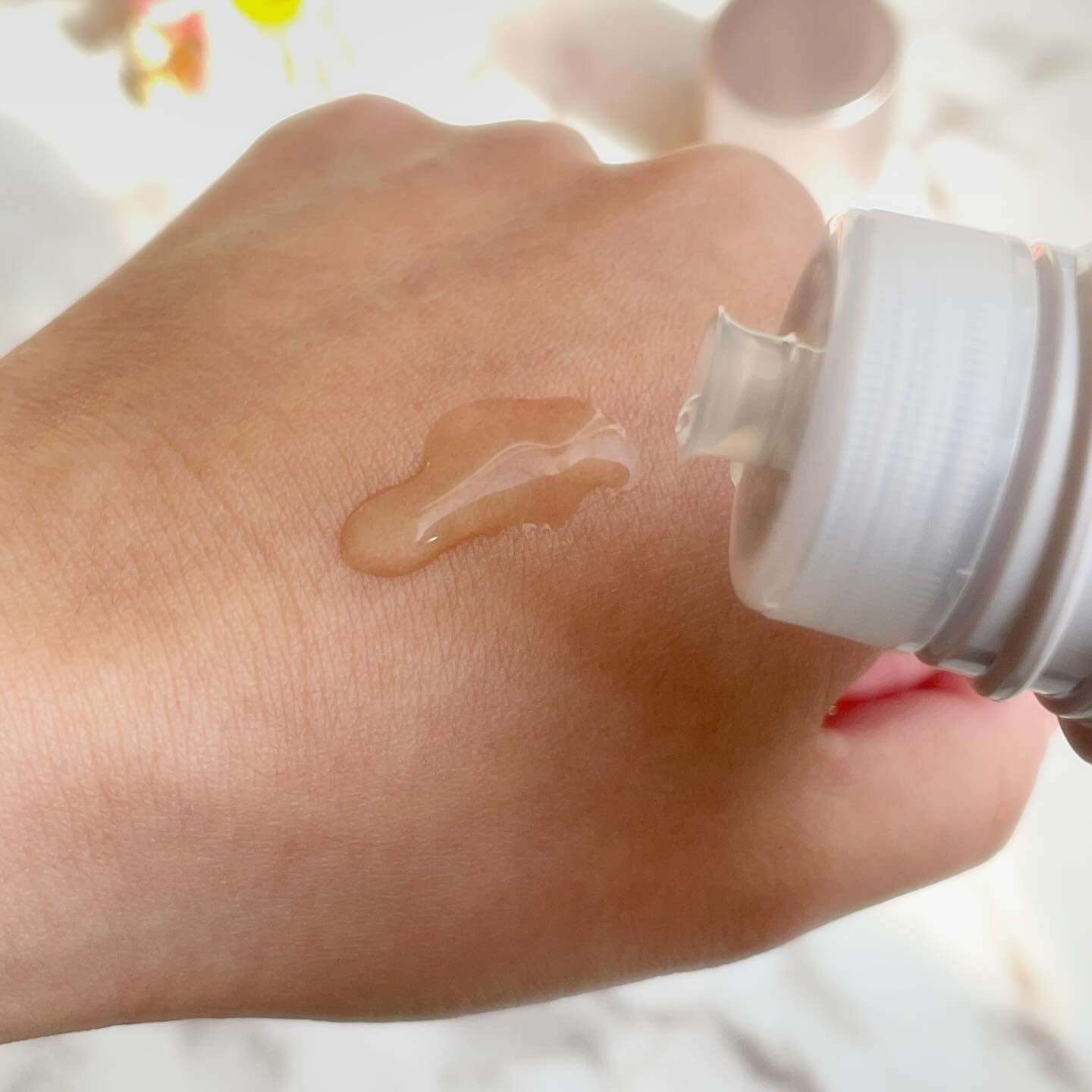 美容液と言うよりは乳液か、クリーム寄りのテクスチャーです。1プッシュ出してみてもこっくりした感じ。手に取って肌になじませてみたところとっても伸びがよいです。べたつくことがなくさらっとしていました!化粧水の後にこの美容液、となっていましたがク...