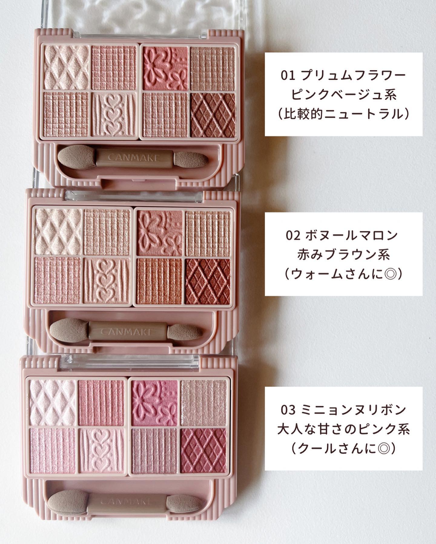 - 持ち歩ける多色パレットがキャンメイクから登場! 捨て色なしの8色入り&チップ付! 「持ち歩けること」や「外出先でもメイク直しができること」を重視した多色パレット。 持ち運びやすいサイズ感なのに、贅沢に8色入りです。 さらに便利なダブルエンドチップまで! マット×パール×ラメなど、組み合わせ方はあなたの自由! 自分好みのアイメイクを楽しめます。