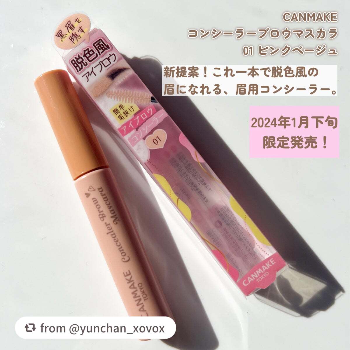 - 2024年4月以降順次定番化! まるでブリーチしたような薄眉に✨ 濃い⿊眉を隠すアイブロウコンシーラー♪ 新提案!これ⼀本で脱⾊⾵の眉になれる、眉⽤コンシーラーです。 本品で⾃眉の⾊を消すことで、上に乗せるアイブロウアイテムの⾊味が キレイに発⾊します✨ 「濃い⿊眉のせいでイマイチ垢抜けない」 「眉の存在感を抑えたいけど眉ブリーチはしたくない」 そんな⽅にオススメ! ⼩回りの利くミニブラシがとっても塗りやすく、 ペタつかないふんわり仕上がり♪♪ 肌から浮かない絶妙なベージュカラーです! 《コンシーラーブロウマスカラの使い方》 ①眉尻から眉頭に向かって毛を逆立てるように塗布する ②眉頭から眉尻に向かって毛流れを整えるように塗布する 《一緒に使うアイブロウアイテムはお好みで!》 ペンシル・リキッド→コンシーラーブロウマスカラ→(乾いたら)パウダー→眉マスカラ ★眉マスカラを塗る場合は毛を逆立てずに塗るのがポイント ※コンシーラーブロウマスカラ塗布後に上から強くメイクすると、はがれる場合がございますので 優しく塗布してください