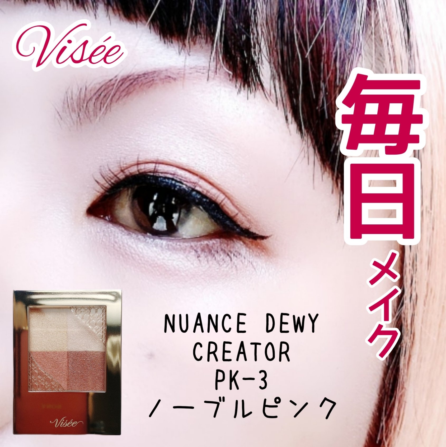 本日のアイシャドウ♡#Visee#ニュアンスデューイクリエイターPK-3ノーブルピンクツヤ感がキレイなツヤタイプ♫ラメ足ししよーかなって思ったけど今日はこのツヤ感をしっかり味わうことにしました!!また、このノーブルピンクが落ち着きもあるけど可...