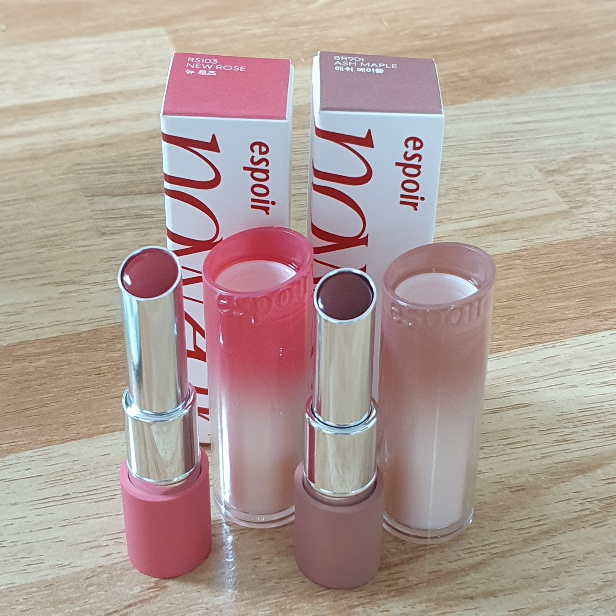 NEW ROSEはコーラルなピンク🩷 華やかさをプラスしてくれる可愛いピンク色。 ASH MAPLEは大人なブラウン🤎 トレンド感のある唇に。 マットじゃないのにベタつかずさらっとした軽い塗り心地が新感覚!