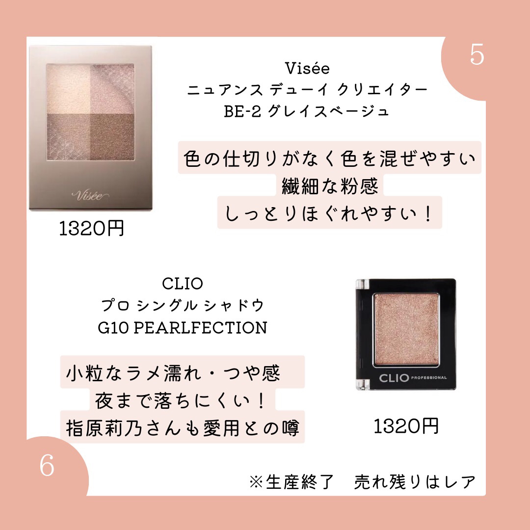 ブルベさん向けのアイシャドウは、イエベ春さんも使えるものが多いのが特徴✨🌸 キャンメイクシルキースフレアイズM07 チュチュバレリーナ ViseeニュアンスデューイクリエイターBE-2グレイスベージュ