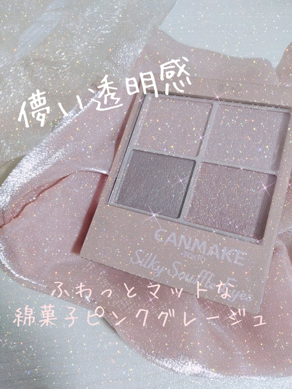 - シルキースフレアイズの姉妹品♡ 肌に溶け込むような透けマットシャドウ 透け感のある柔らかい仕上がりになるマット3色と、透け発色の繊細ラメ1色のパレットシャドウ♡ 完全マットアイや、ラメ×マットアイなど、メイクのパターンを楽しみましょう!