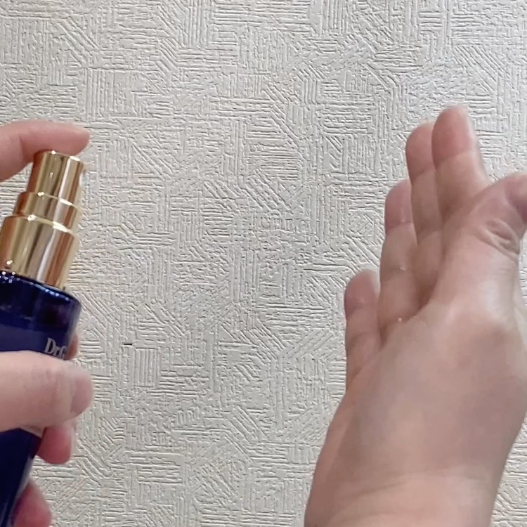 弾力や保湿ケアはもちろん、美白やしわケアまでできちゃう贅沢なミストセラム✨ 見た目はどろっとしているけど、スプレーで出すとほんのりとろみがあるくらい 霧が細かくて顔全体に均一に吹きかけられる 中身はドロっとしているのに肌なじみはとても早くて、なじむと頬に手を当てても吸い付かないくらいベタつきなし!✨ お風呂上がりはこれで最速保湿してる 霧が細かいからメイクの上からでも使えそう!