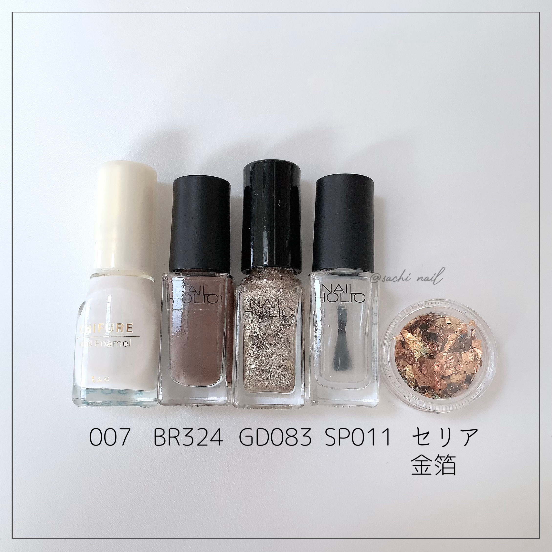 ワンカラーでも指ごとに色を変えるだけでオシャレに見えます💕 画像のようにゴールドラインとストーンを少し足すだけで華やかさがアップ🥰 何度かご紹介したことのあるスポンジで作るグラデーションです✨ スポンジを使うことで境目が綺麗に馴染んでくれます💕 アルミホイルの上でブラウンとトップコートを1:1くらいで混ぜたものを、トップコートのハケに取って3箇所に塗るだけ👌 事前に混ぜたものを塗ることで、爪の上でぼかすより簡単に出来ます💕 ベースカラーが乾く前に点置きしてぼかすことで綺麗にぼかせます✨ スピードが大事なので、使うポリッシュのキャップは全て開けておきましょう😊 天然石のラインはガタガタの方がより天然石っぽく見えるので、ラインを描くのが苦手な方でも大丈夫🙆♀️ 難しそうに見えて、やってみると意外と簡単に出来ます♡