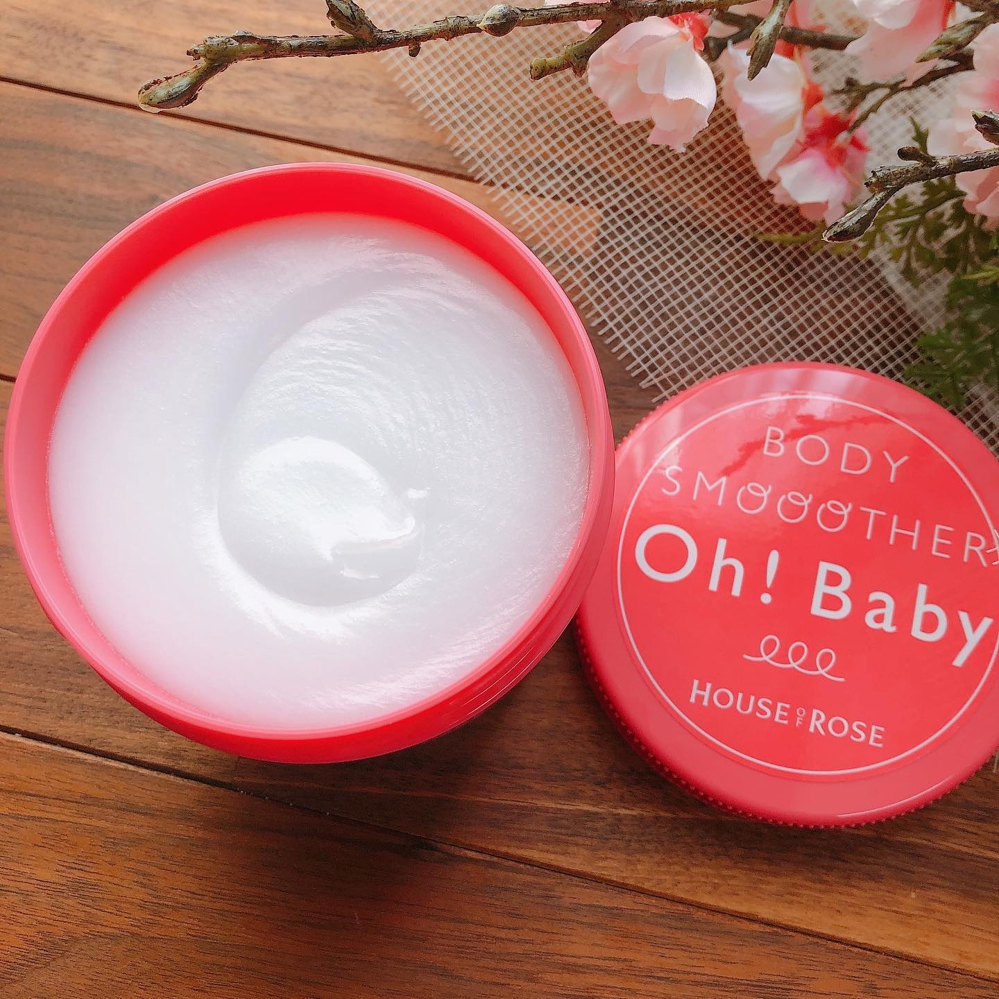.ハウスオブローゼOh!Babyボディスムーザー.30年以上も前に誕生したロングセラー商品✨つるつるすべすべのボディに導くマッサージペーストです。.使い方はお風呂で温まった後、ぬれた手に取り少量のぬるま湯でやわらかくなるまで練り、気になる部分...