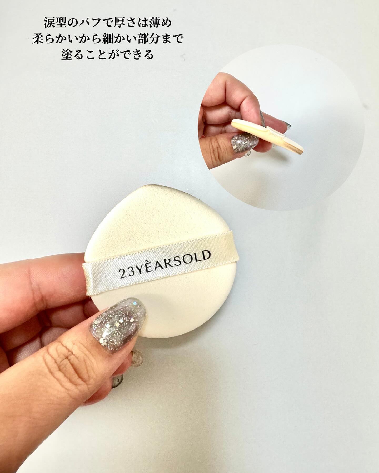 相変わらずの最大72時間のメイク持続力 そして、ツヤも24時間持続してくれる! 皮脂を吸収しやすいパウダー配合で 脂性肌さんでもツヤ肌になれちゃいます♡ 形は他のクッションと同じでたまご型 パフも少し薄めだけどクッション性があります。 そして、気になるマスクのつきづらさ! 家の中で怪しさ満点で6時間ほど マスクして過ごしたところ… 最近、使ったファンデの中で1番 ついてない!! ピンクと何が違うの?と… 見比べて見るとピンクの方がカバー力重視な 部分もあるのでピンク系で少し明るめな気が… でも、レッドが決してカバー力がないわけでは ないのでキレイに仕上がりますよ♡