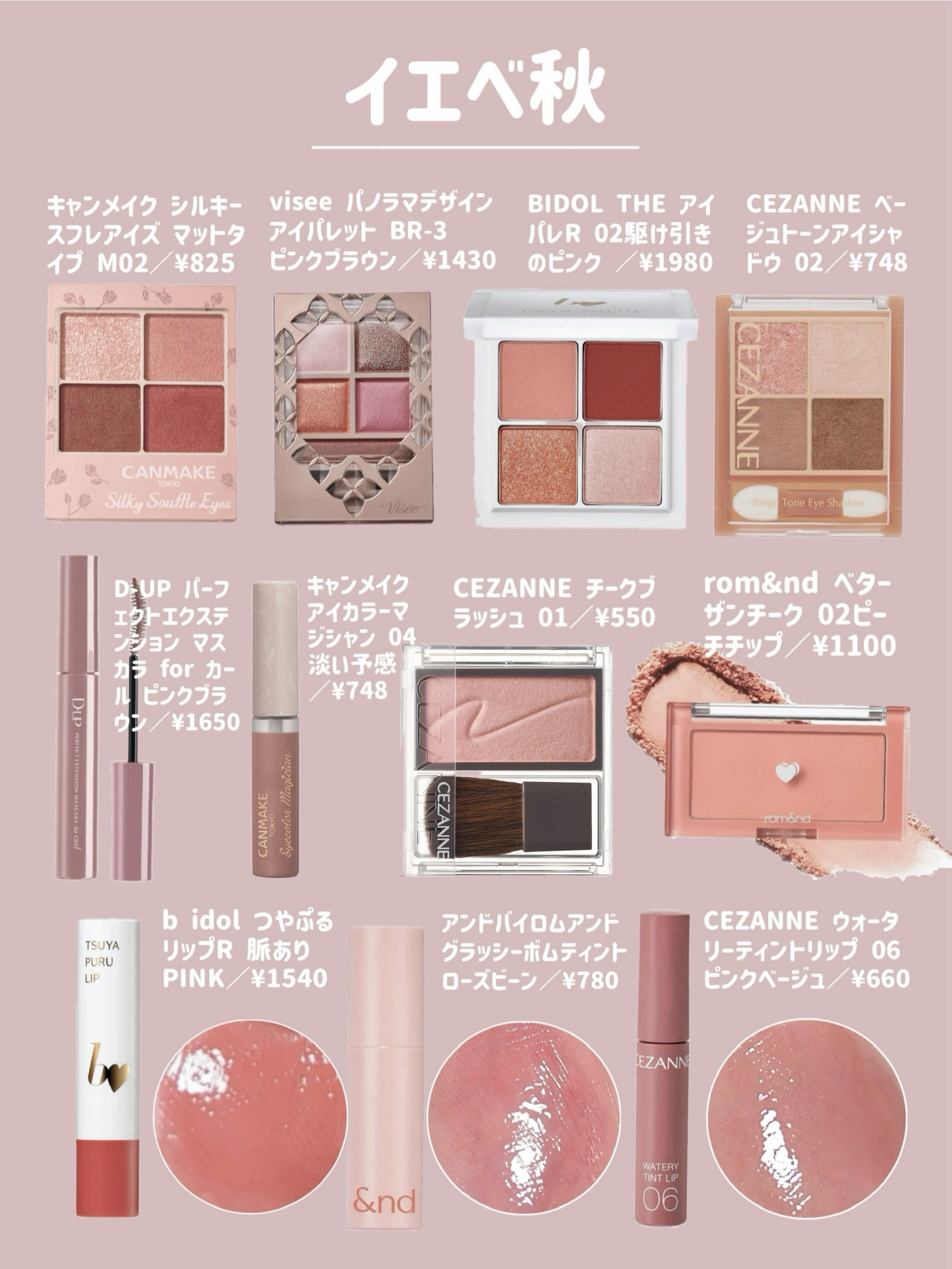 全部プチプラですごい参考になる!学生にありがたすぎる〜🙈 最近イエベ春のメイク飽きちゃってイエベだけどがっつり韓国JKメイクしたくて新しくグレージュのアイシャドウ買っちゃった🤦🏻♀️ だからみおんちゃんおすすめのアイライナー教えてほしいな🥺