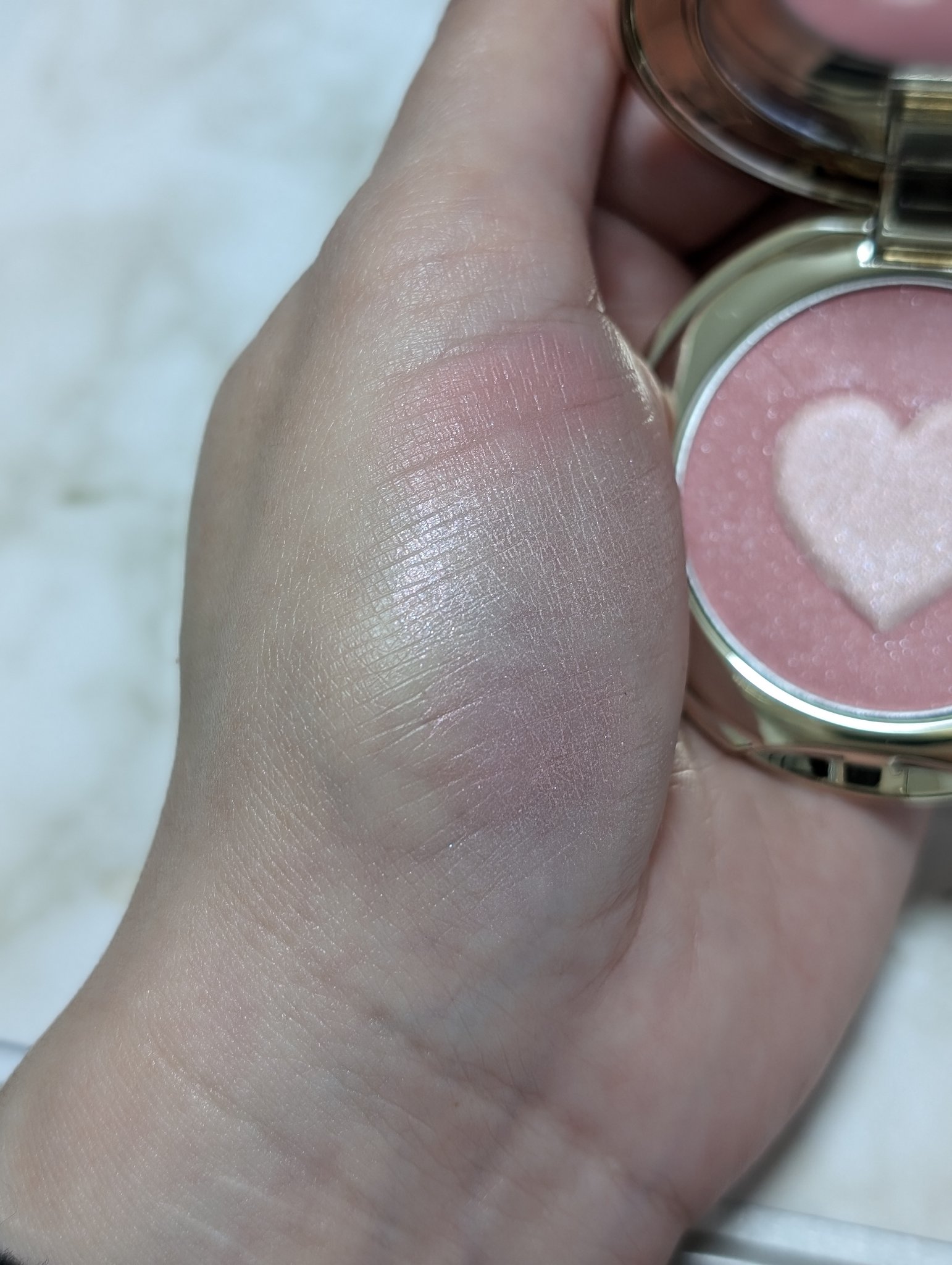 使いやすそうながらーと♡の形が可愛いチーク♡ 細かいラメが入っていて キラキラします。 チークカラーとハイライトカラー混ぜて使用しても可愛い♡ 粉質もしっとりしていて◎ シンプルなパッケージでコンパクトなので 持ち運びもしやすそうでよかったです♡