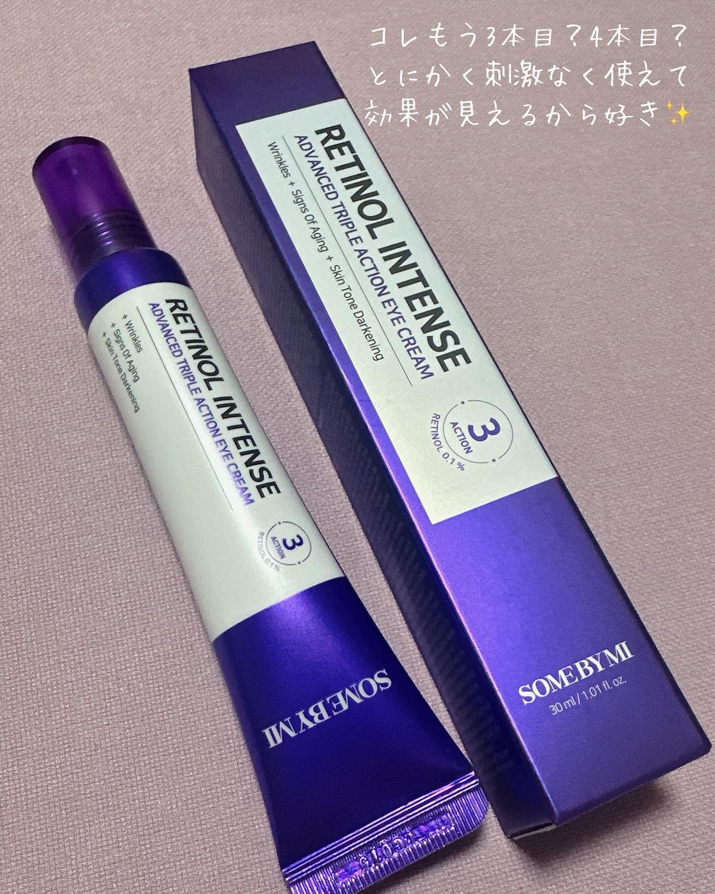 レチノールインテンシブアドバンスド トリプルアクションアイクリーム💜 ☑︎レチノール&レチナール(シワ改善ケア) ☑︎グルタチオン(ブライトニングケア) ぷるんとふっくらしているハリのある目元ケアができるよ☝🏻 濃厚なテクスチャーだけど軽くて使いやすい🙆🏻♀️ ベータパンテノールクリームと一緒に使えばガラス玉肌目指せるよꕀ💎💜💙