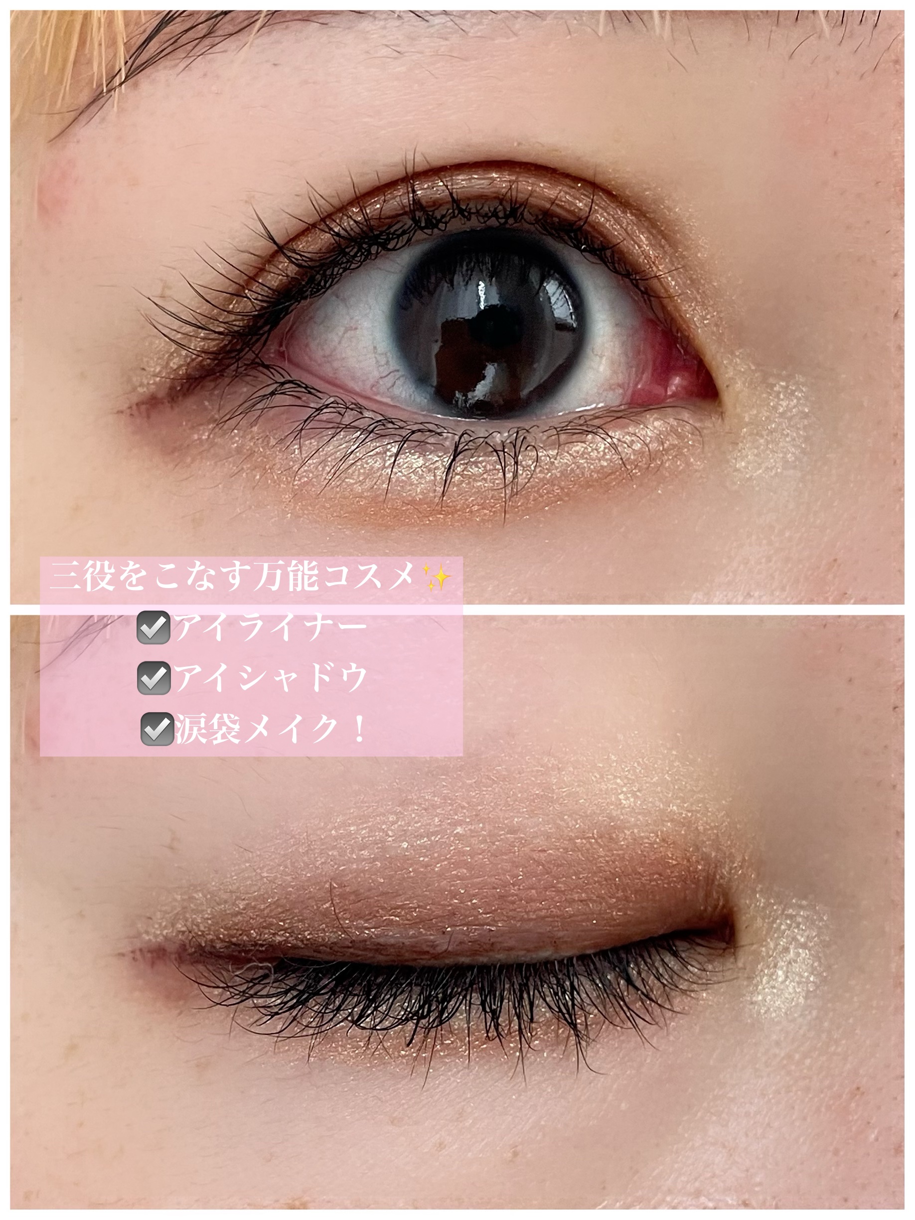 柔らかくなめらかな描き心地でスルスル描けて擦っても全然ヨレなくてぴたっと密着してくれます✨ ミルクブラウンをアイホール全体に塗ってメロウブラックをアイライナーにムーンライトオーロラを涙袋にメイクしてみました! 他のカラーもかわいくて豊富なのでぜひチェックしてみてください✔