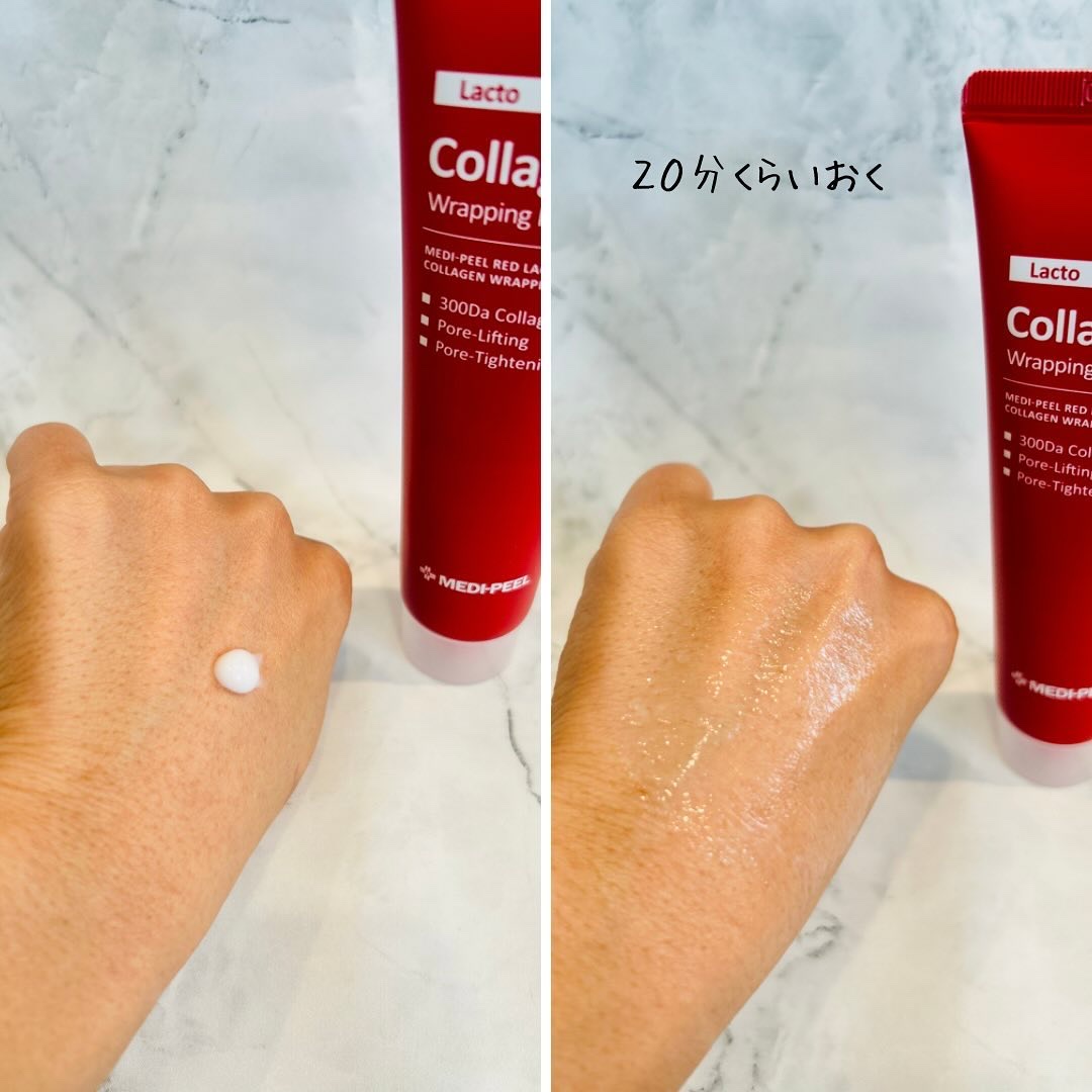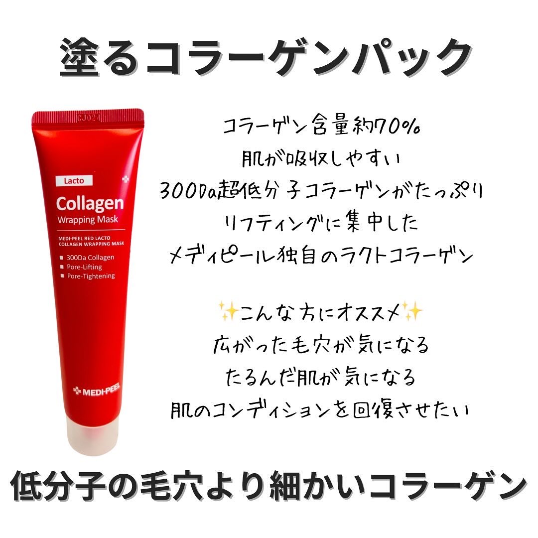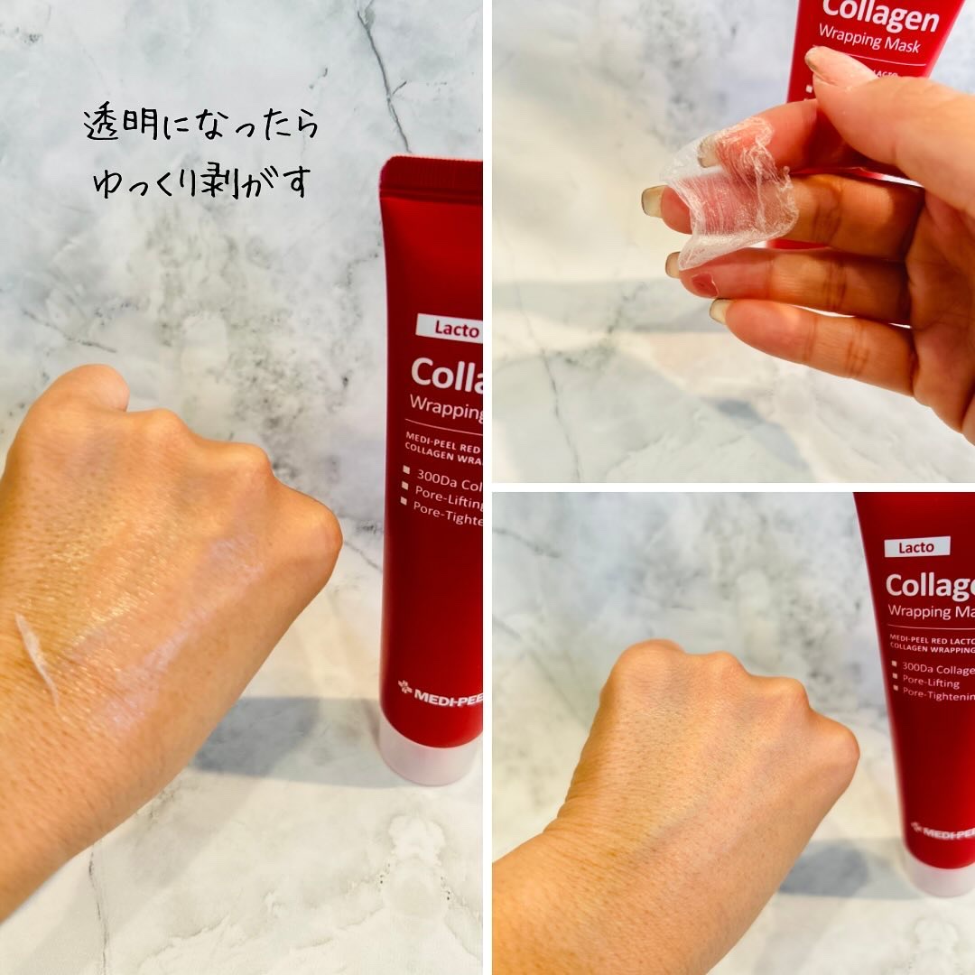 塗るコラーゲンと言われる #MEDIPEEL の レッドラクトコラーゲンラッピングマスクをいただきました🥹💞 クリームがラップのように薄い膜がスキンケアを閉じ込めて、剥がした後のお肌のプルプルつや感🫧 毛穴のタイトニング効果やリフティング効果もあるとか🎀