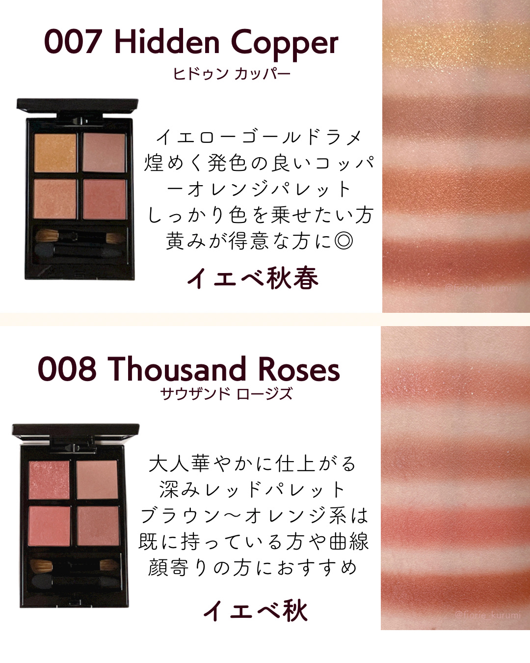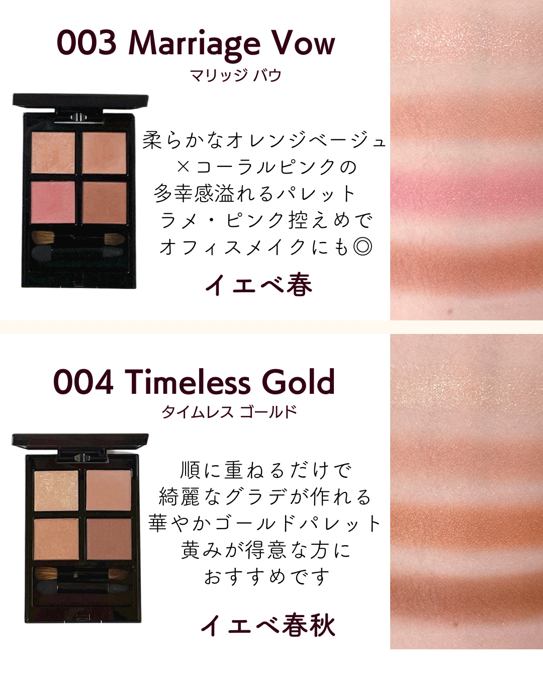 ニュアンスチェンジを楽しむ“ニュアンサー” 色味や質感によってはハイライトとしても◎ 001N Beyond Light → 黄み控えめのシャンパンベージュカラーをベースにシルバーパールがチラチラと艶めく! 005N Aurora Veil → これは本当にクールトーン(青みのあるカラー)がお得意なブルーベースの方は買い!