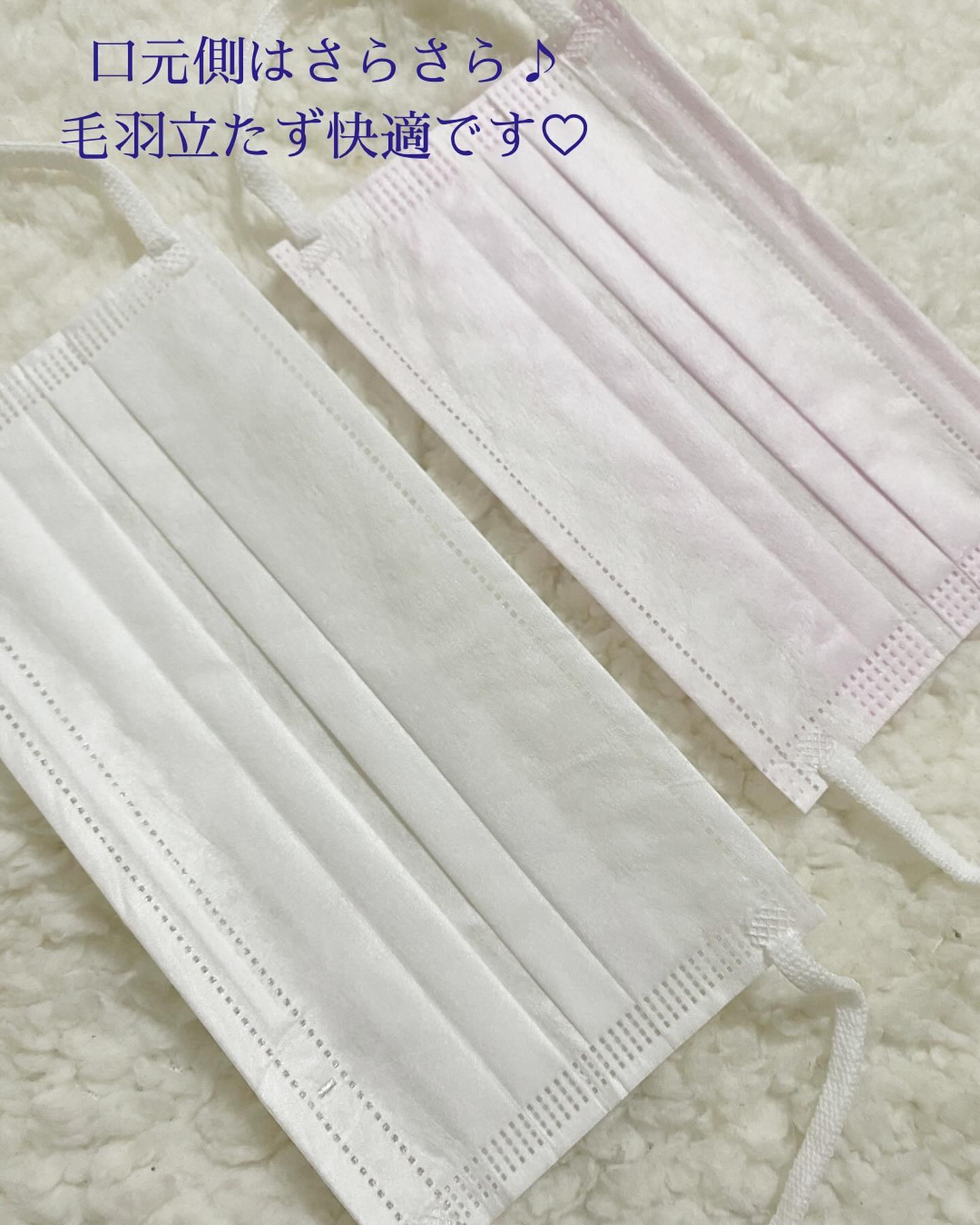 毛羽立ちにくいマスクって有難い!🙏✨ 口元側はツルツルサラサラした手触りで肌触りがよく感じました☺️ ピンクの箱の方が小さめで、マスク自体も淡いピンクで可愛い🩷ᩚ 青い箱の方がふつうサイズで、こちらは白いマスクです。