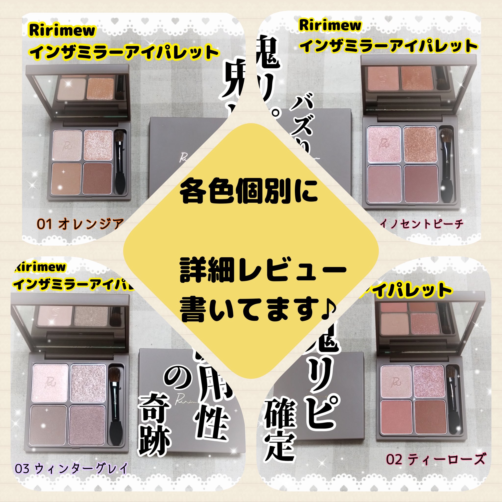 Ririmewインザミラーアイパレット𓂃𓈒𓏸◌ずっと使ってるアイパレット(˘ᵕ˘)♡目元にのせた感じも濃すぎずナチュラルで◎割と薄づきな印象です♩色×光×質感を1つに詰め込み、毎日のアイメイクのバリエーションを膨らませる4色のアイシャド...