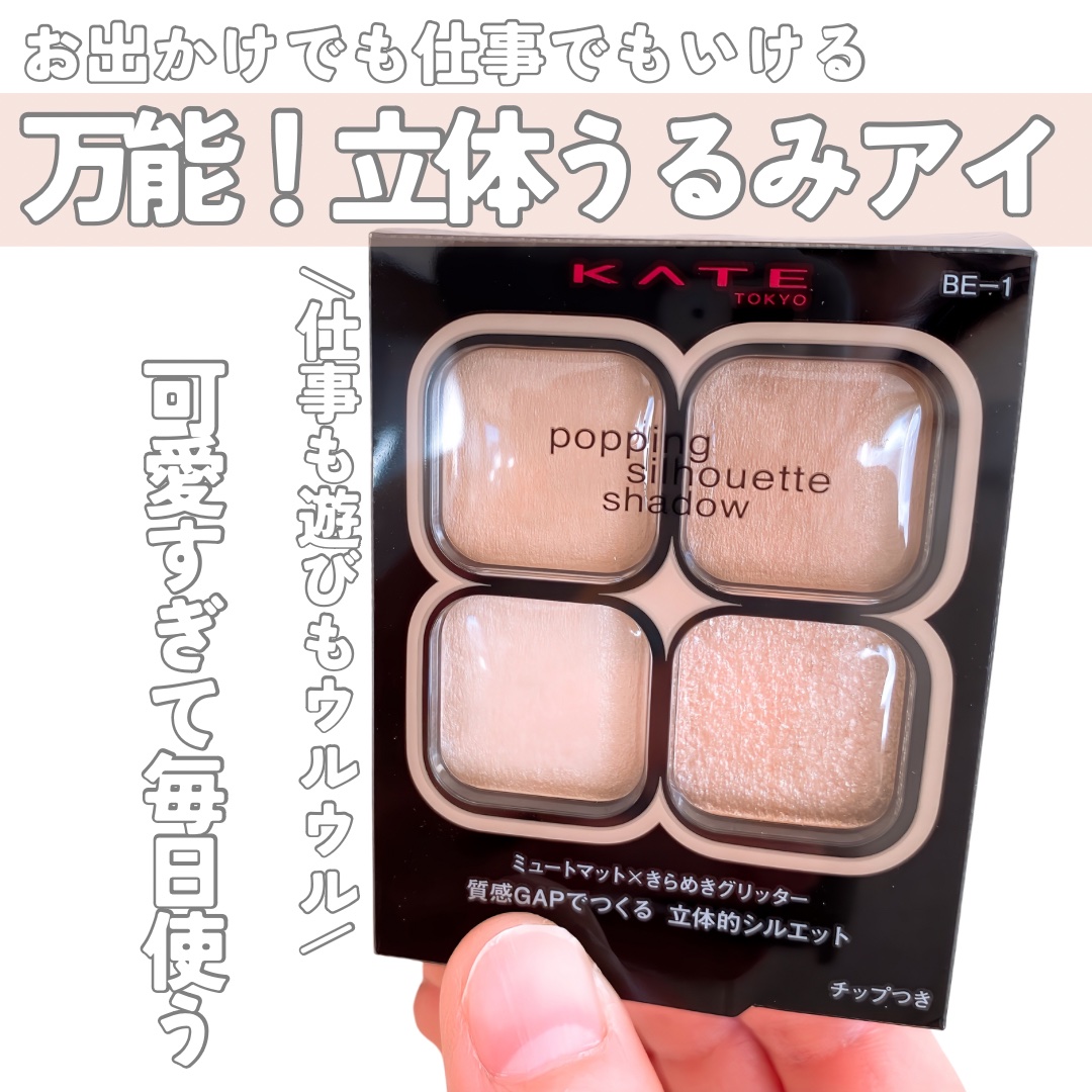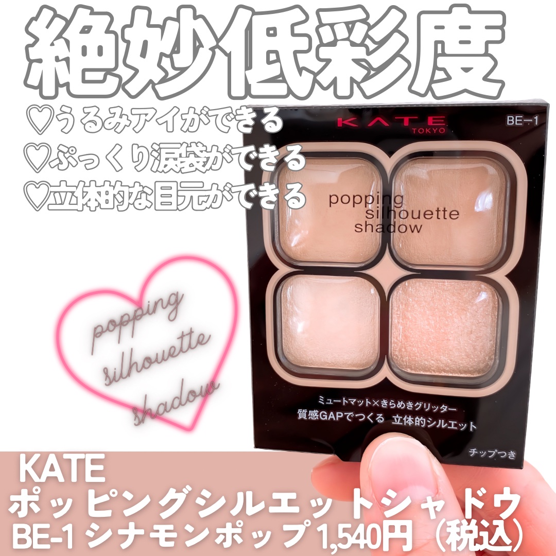 締め色無しでも爆盛れするイエベ秋おすすめ💗❤︎︎︎︎❤︎KATEケイトポッピングシルエットシャドウBE-1シナモンポップ¥1,540❤︎︎︎︎❤︎質感トリックで、クリッと丸い2.5次元アイに仕上がるポッピングシルエットシャドウミュートマット×...
