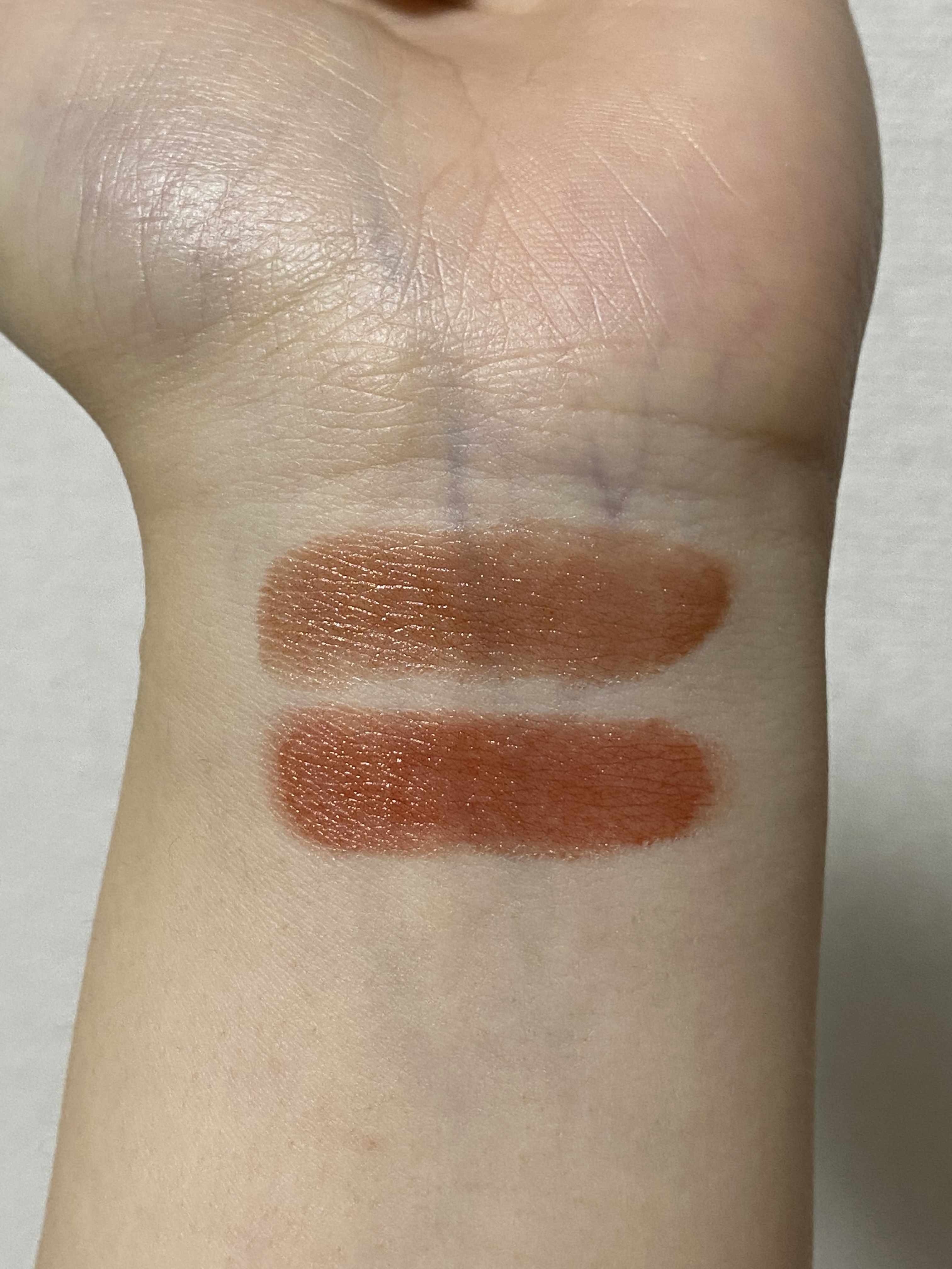 発色・色持ちも良くて グロスですがベタつき感もなく 塗り心地も良かったです!🥰✨️ わたしは少し前にPLAZAで 2000円くらいで購入しました! 今だとQoo10のメガ割でもう少しお安く 購入できると思います!🥹 どちらも使いやすく馴染みのいい色でした!