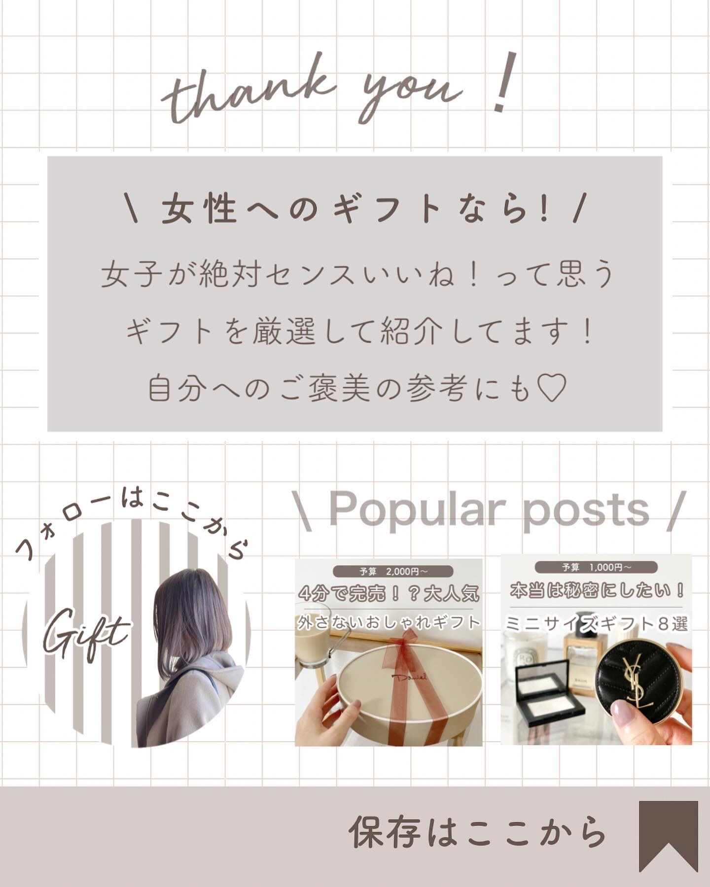 プチプラだからお配り用や自分への プチプレゼントにしてもいいね😍 20代向けの贈って喜ばれるギフト& 自分へのご褒美にもなるおしゃれな アイテムを紹介してるよ❤️ 限定情報やお得情報もストーリーでお知らせ🎁