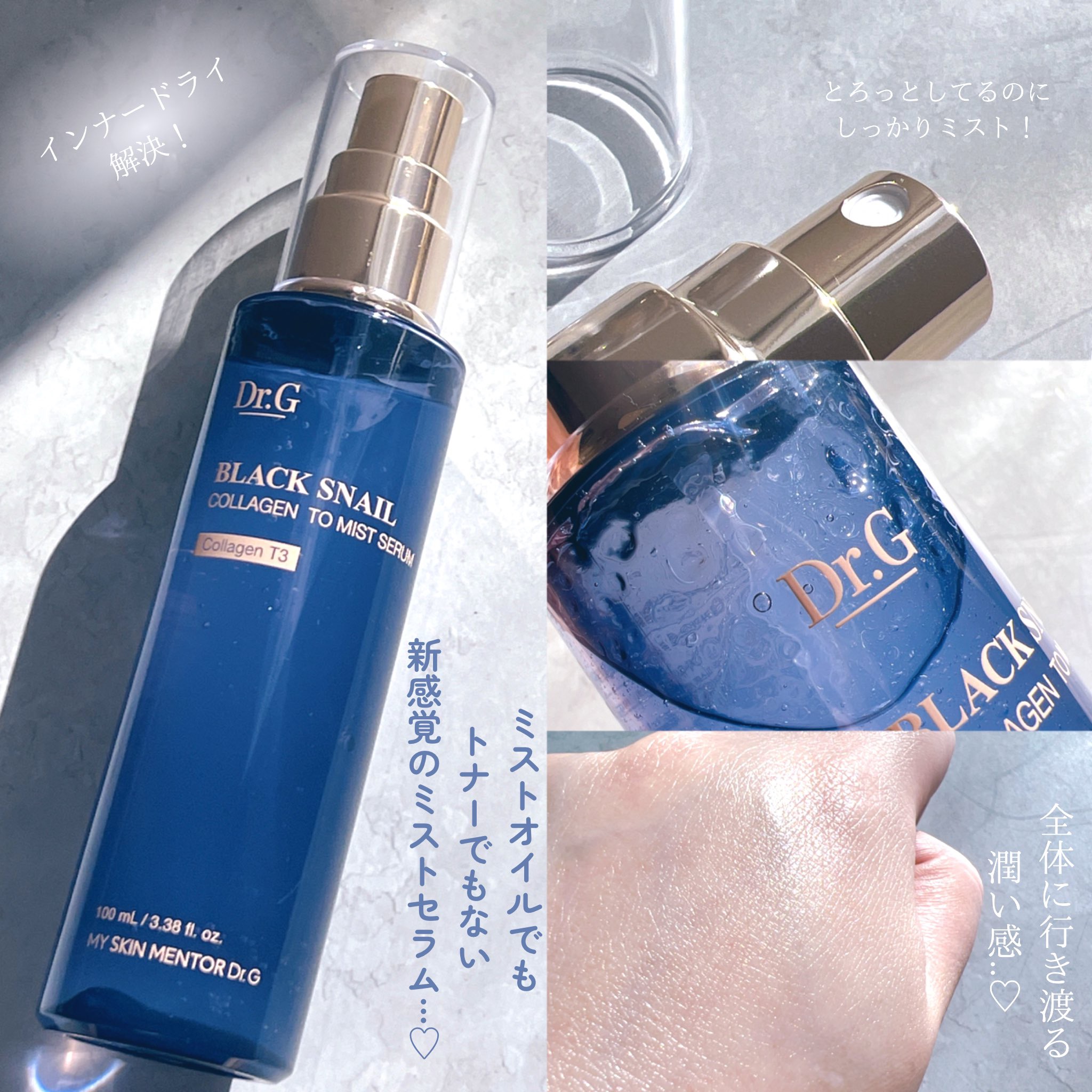インナードライ肌を内側からケアできる スプレー型のコラーゲンミストです。 ブラックスネイルが配合で肌にしっかり栄養を与え、T3コラーゲンという、人が持つコラーゲンに極めて近いDr.Gの独自成分で肌にハリや弾力を与えてくれます。 フローラルの良い香りもふわっと香って癒されます。