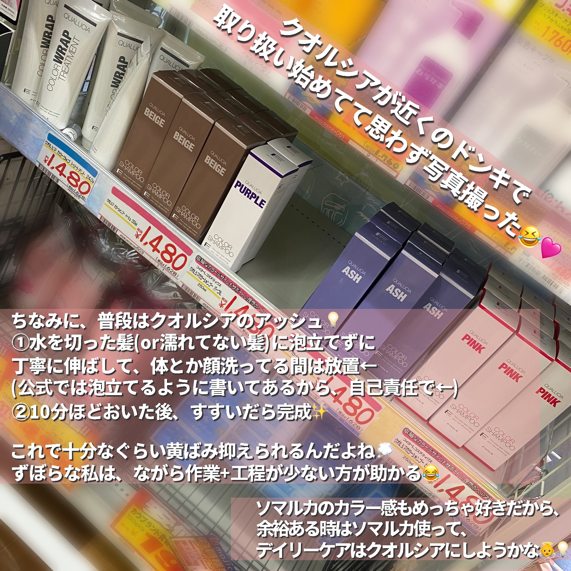 SOMARCAカラーシャンプー/チャージカラー:パープルこちらはサロン専売品ですが、ドラッグストア・ロフト・ドンキホーテ・ネット等で買えるカラーシャンプー♪カラーシャンプーとカラーチャージのダブル使いでサロンカラーにさらに色をチャージ!髪はし...