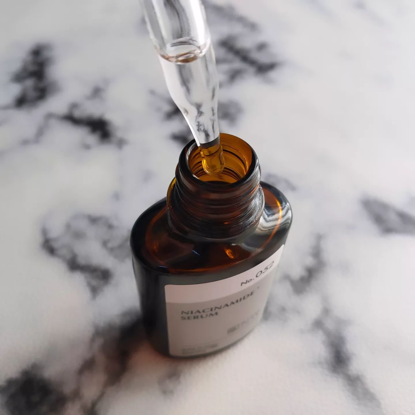 20%ナイアシンアミド※1配合の美容液です✨ ※1整肌成分として ニコチン酸アミドとも呼ばれるビタミンBの一種でくすみ※2の原因にアプローチします。※2乾燥による 話題のスキンケア成分PCA亜鉛も4%配合🌿 肌の水分と油分のバランスを整えハリツヤある肌へと導いてくれます。 スポイトタイプで衛生的で使いやすく、とろっとしたテクスチャーに見えますが、肌にすーっとなじみます。 部分的に使っても、顔全体にも使えるそうです😊✨