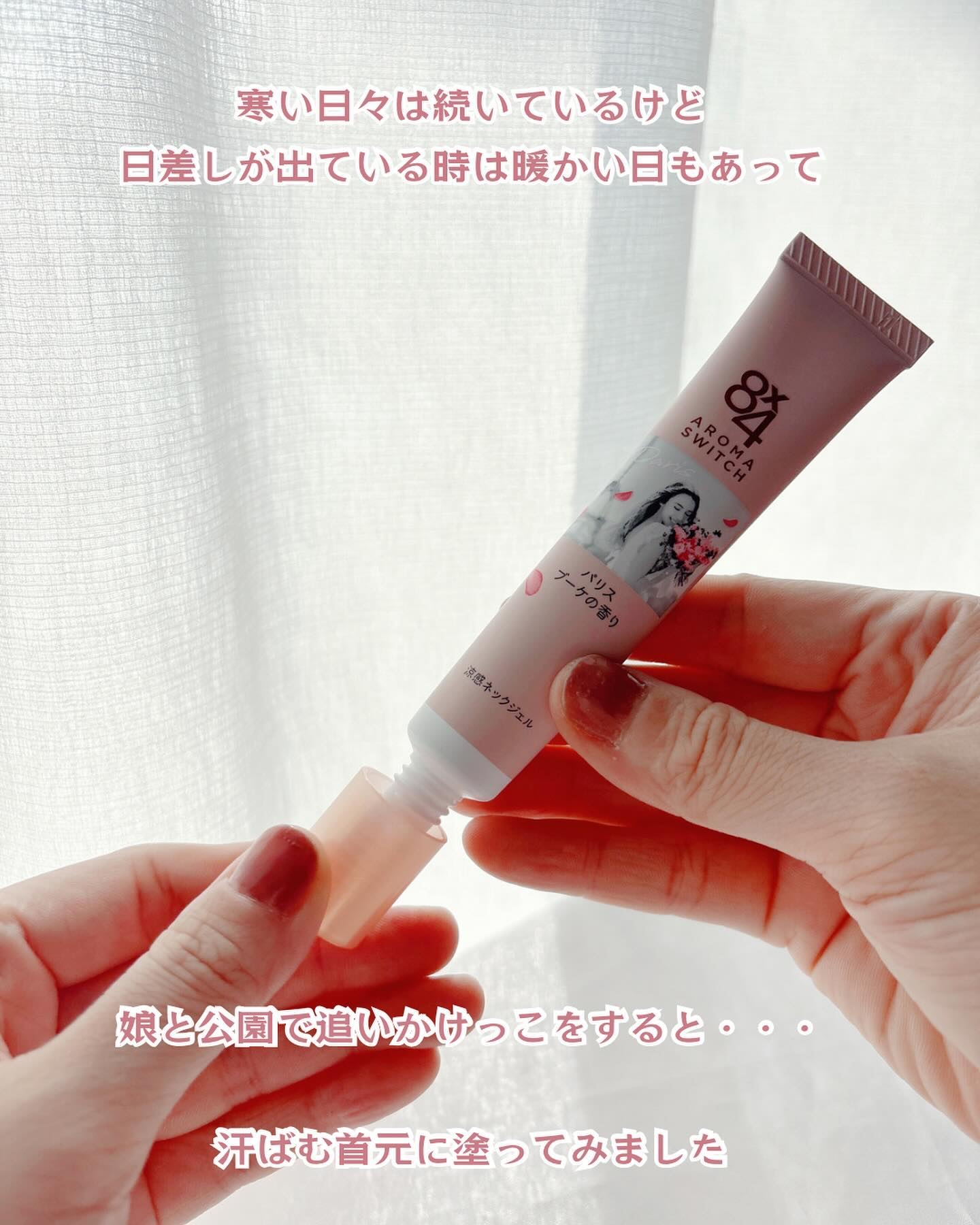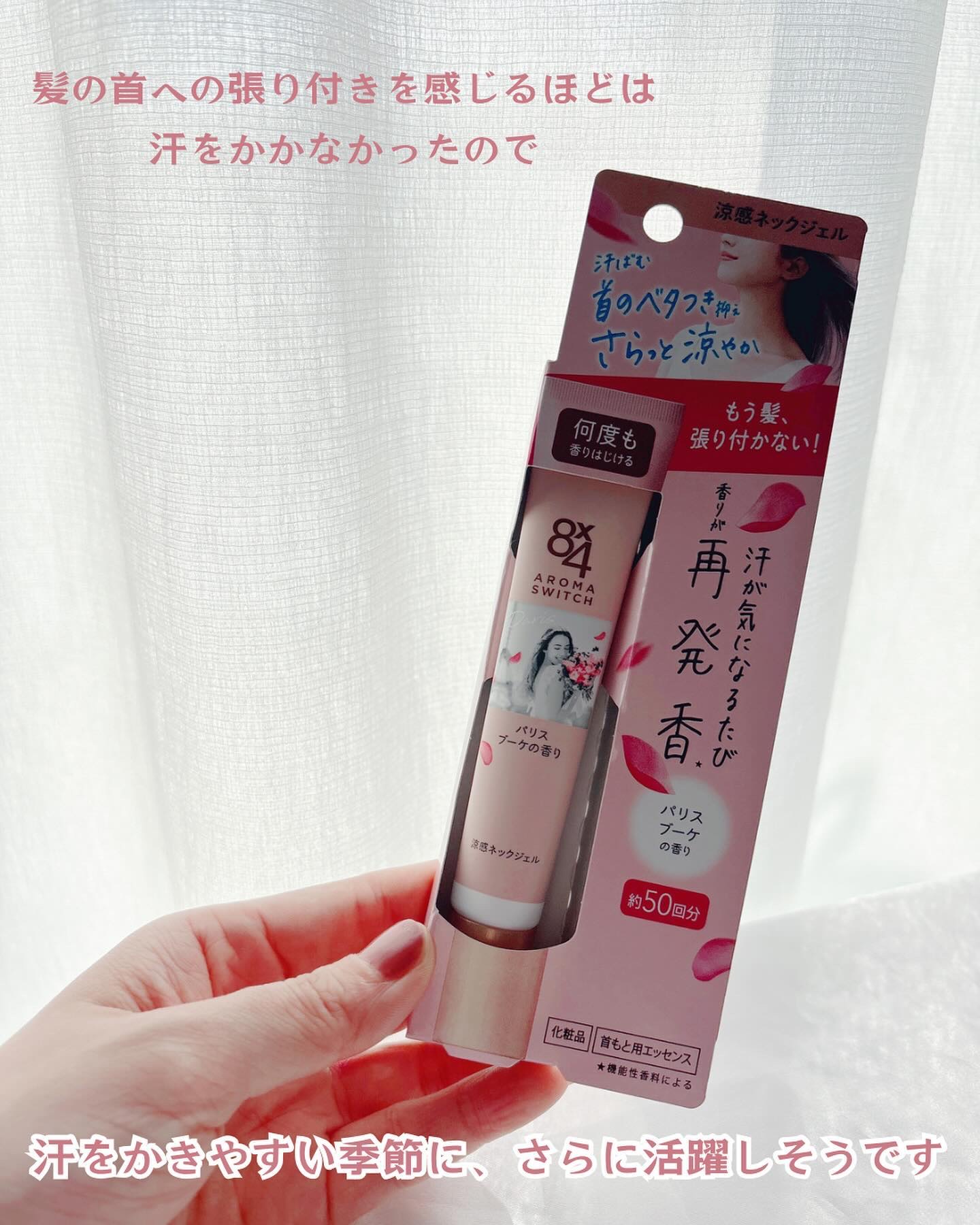 8x4からいただきました。8x4 アロマスイッチ 涼感ネックジェルパリスブーケの香り商品名:8x4 アロマスイッチ 涼感ネックジェル汗ばむ首のベタつき抑えさらっと涼やか 携帯できる汗ケアコスメ首のベタつきを抑え、髪の張り付きを防ぐだけでなく汗...