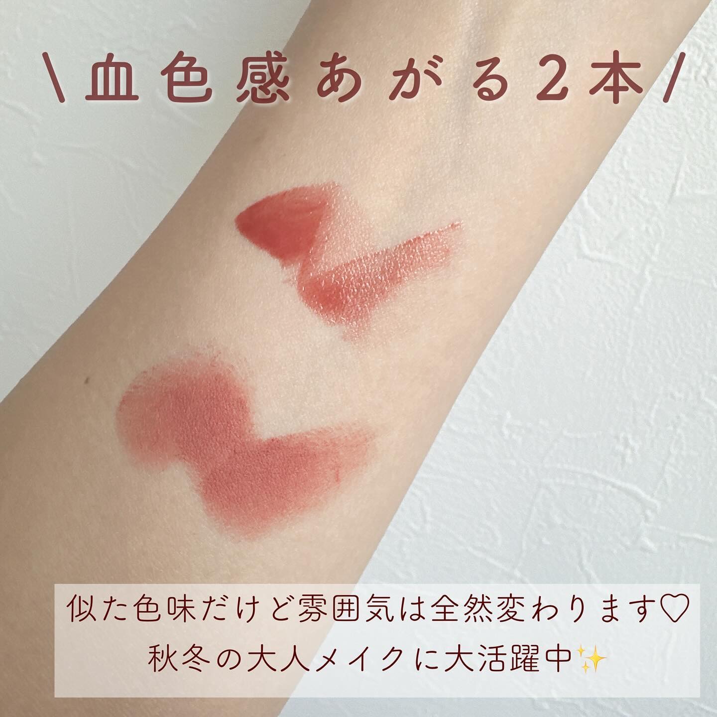 ゼロマットリップスティックの方はマットリップなのにパサついたり、唇がシワシワになることもなく かなり使いやすいんです☺️✨ デュイフルウォーターティントは 説明いらずなくらい人気ですよね✨✨ 2度塗りするとティント効果も更に長持ち! 艶が取れても馴染みのいい唇の色でいられます👏🏻🩷