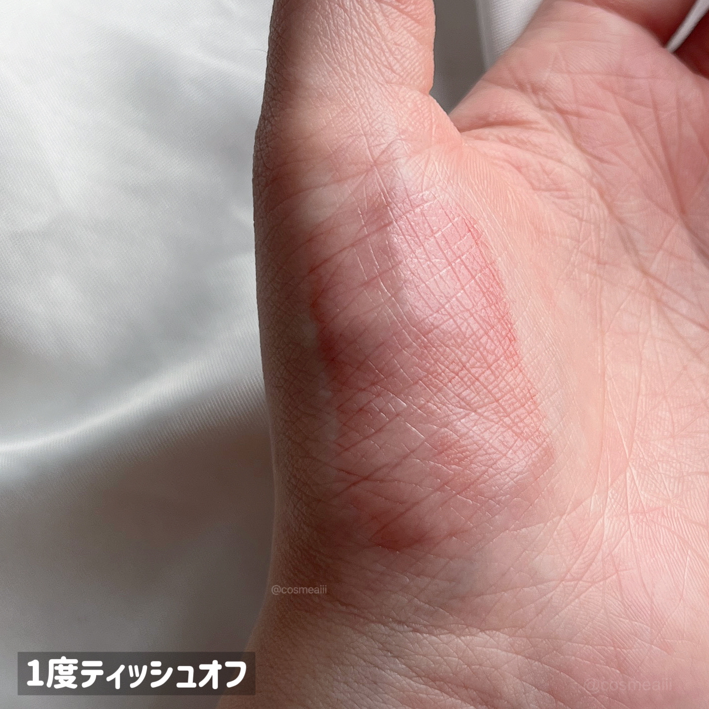 今までみんなご存知のジューシーラスティングティントも愛用してますが 自分的にはかなり高級感がアップした↑ 実物みて感動するぐらいめっちゃ好きなパケ😭🌷 名前通りピーチカラーでイエベさん絶対買って欲しいかわいい色です❤️ イエベさんでも簡単に使えるローズカラーで デートにおすすめなお色です◎ オレンジブラウンカラーで 塗ったら一気にオシャレになれるし秋にぴったりなカラーです🍁 正直。既存のジューシーラスティングティントと似てるような質感ですが くちびるに塗ると新作のほうが若干塗りやすくなった気がします 色持ちは相変わらずめっちゃ良いです◎ 画像の7枚目からはスウォッチ、参考になればと思います。 ティッシュで擦っても色はちゃんと残ってる 既存のティントリップは甘いキャンディな匂いがしたが、 今回の新作は少し匂いもしますが、嫌な甘い匂いではない。 匂い人それぞれ感覚違うですけど、個人的には結構大丈夫だし、むしろ前の商品より好き♡