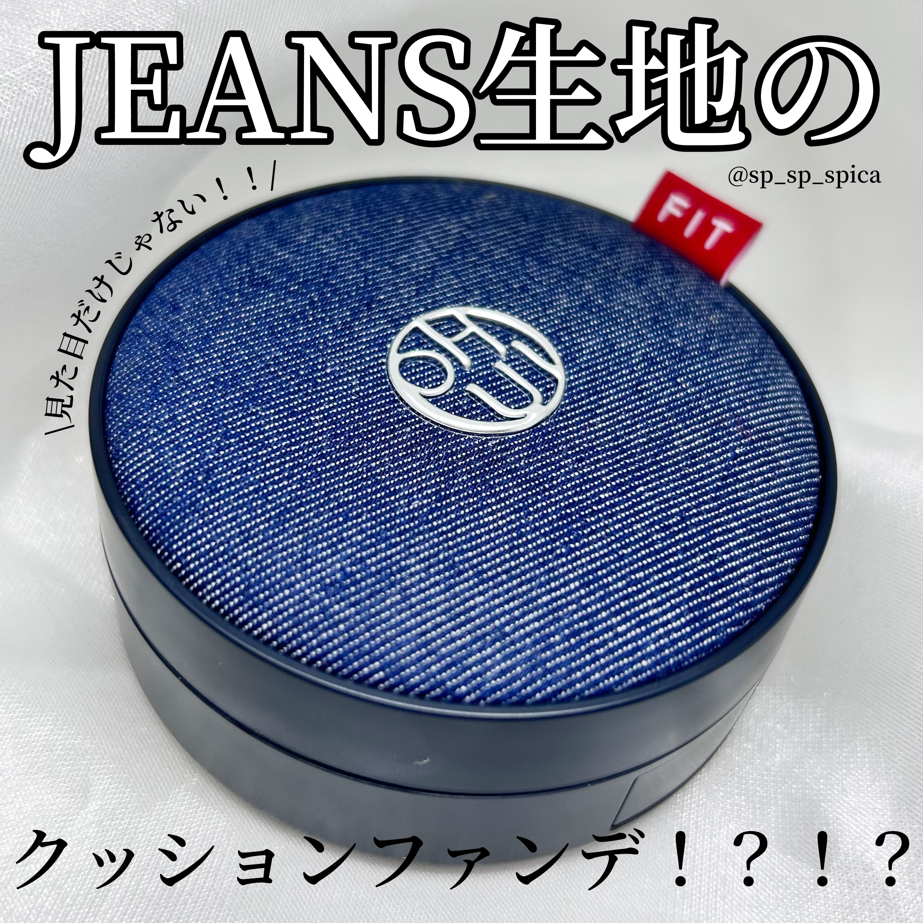 デニムのパッケージが可愛い👖 クッションファンデ🤍 リアルなデニム生地のデザイン💙 1回塗っただけで薄くなじみ密着して仕上がりもナチュラル✨ くすまず長時間メイクアップが続くのも嬉しい🫶🏻ˎˊ˗