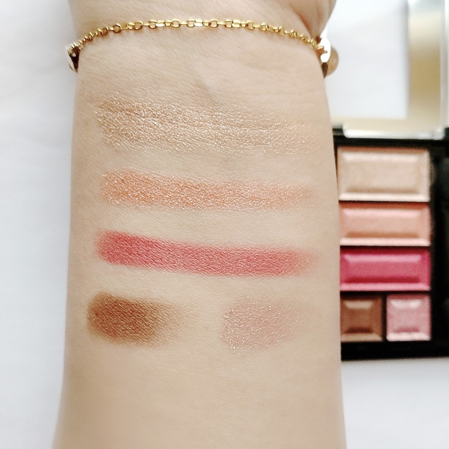 粉質はしっとりしててまぶたに綺麗に密着◎少量でもかなり発色してくれて色持ちもいい