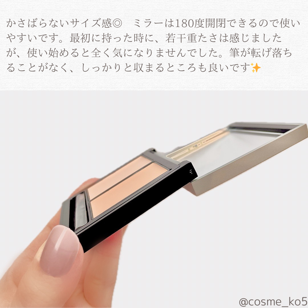 圧倒的な唯一無二のカバー力 紫外線カット効果も備えている 整肌成分が配合されてクマのケアもできる 石けんで簡単にオフできる テクニック要らずでメイクアップできる パッケージがスタイリッシュ 磁石の蓋が静かな動作で開閉可能 レフィルのみ購入できる ヘリがはやいというお声も聞かれますが、厚塗りすると消耗ははやいかもしれません。 2色を混ぜて色を調整するので時短を求める方にはスピーディさは欠けるかもしれません。