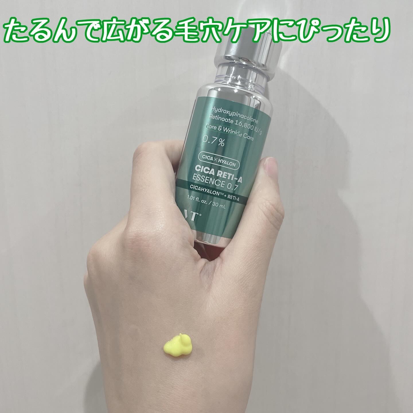 VTCICAレチAエッセンス0.5で、毛穴レスなキメ肌を目指す✨私はレチノールリピ使いなので「中レベル」の0.5%です。私の使用感・効果テクスチャー:みずみずしくて、肌になじませるとべたつきがなくさっぱりとした使い心地がお気に入り。肌の変化:...