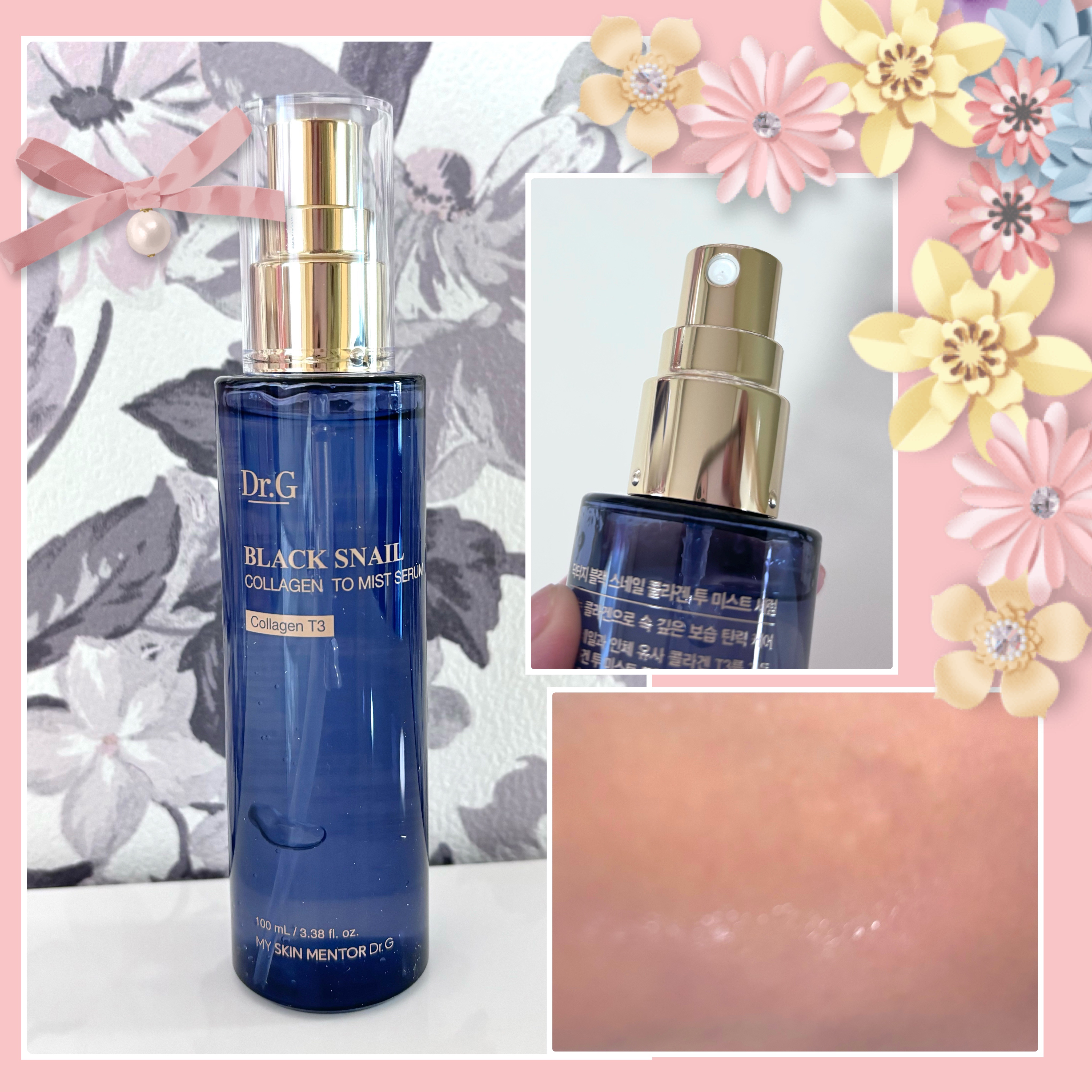 ブラックスネイルが配合されていて、T3コラーゲンという、人が持つコラーゲンに極めて近いドクタージーの独自成分で肌にハリや弾力を与えて、コラーゲンの生成を促進する 中身はジェルっぽいのに、スプレーするとちゃんと細かい水分が出てきます♫ 私はお風呂出てからすぐにスキンケアができない事が多いので、まずはシュシュっとスプレーしてます♫ スプレータイプ初めて使ったのですが、楽ちんなんですね♫ スキンケアする前に大活躍してます✨