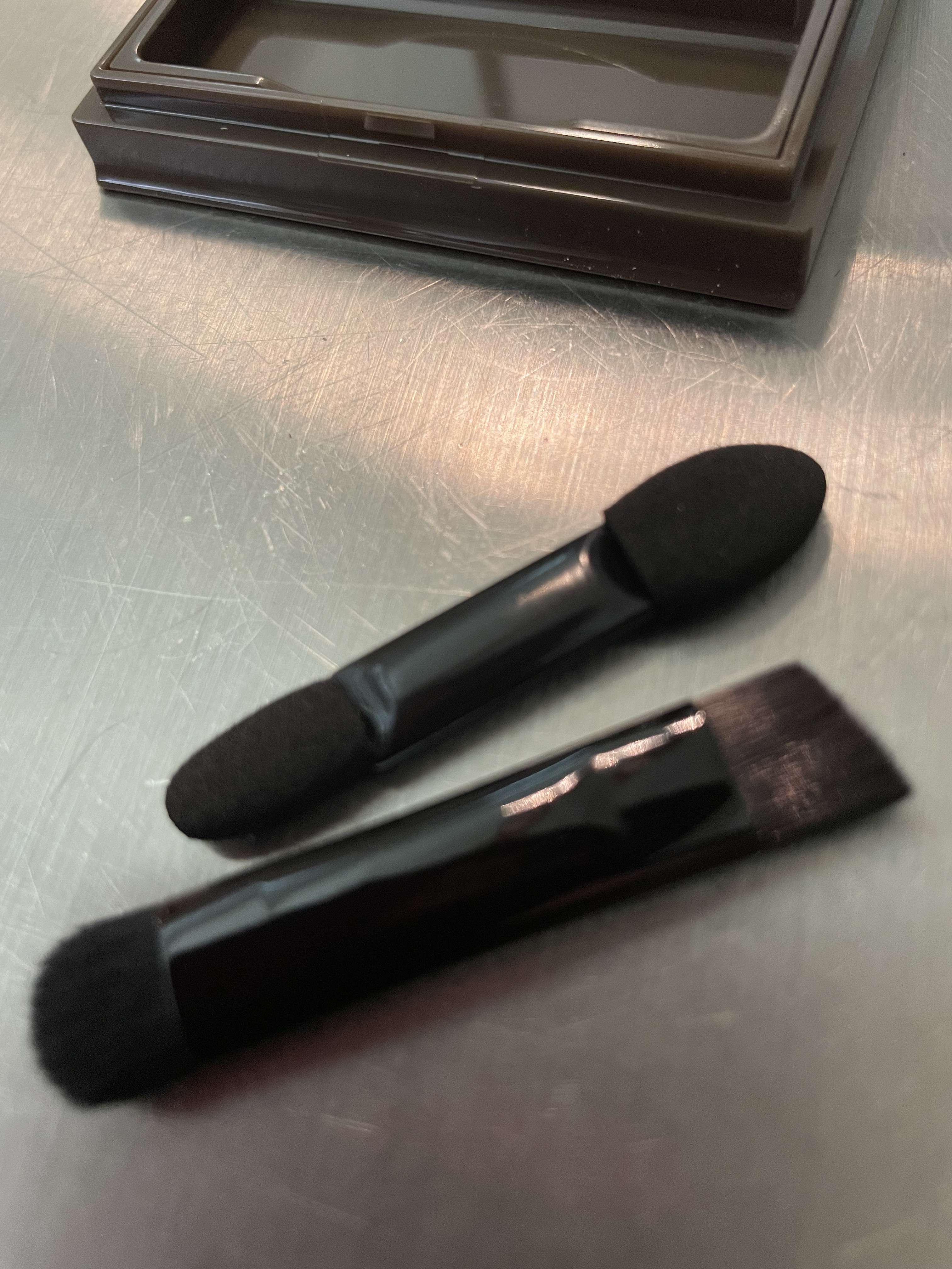 透け感がある色で気に入りました。 スッキリとした目元に見せられるかも! 元々目が大きく この頃はアイシャドウのせいか 落とした後も黒ずんで影になり ガイコツの目のところを 真っ黒に塗ったかのような かわいくもなく喜ばしくもないデカ目で アイシャドウはもう買えないな、と 感じていた所でした。 明日が楽しみです。