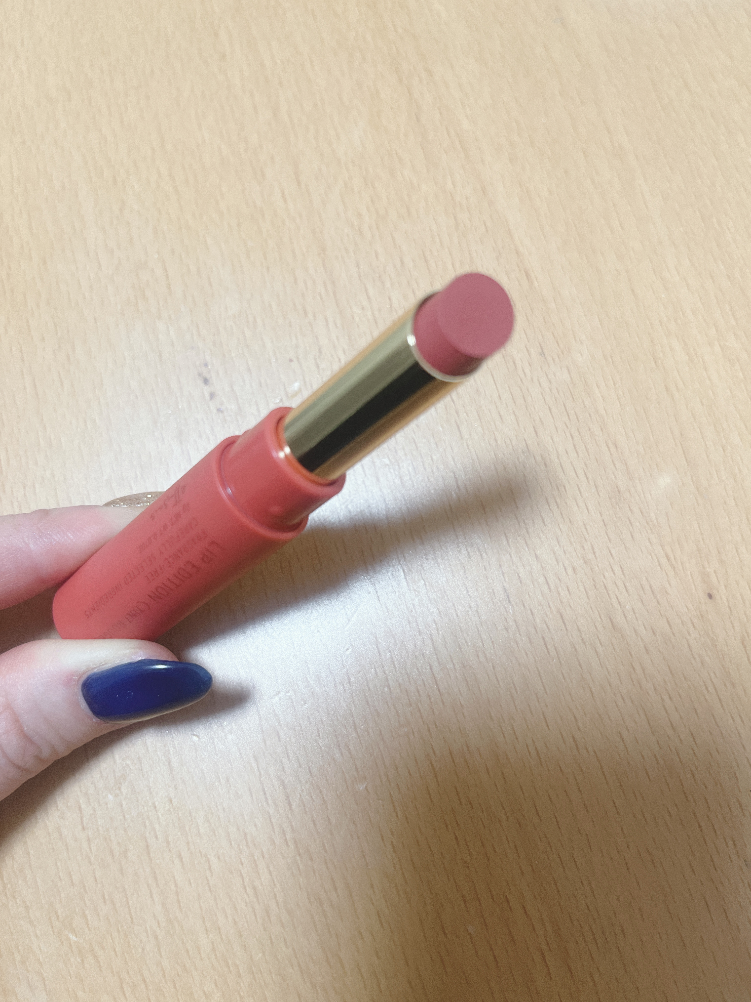 高発色でマスクとの摩擦にも強く、色移りしにくくマスクメイクにぴったりなリップです😊 マットな仕上がりですが、滑らかなテクスチャーで塗りやすく、乾燥しにくく感じました🙆♀️ モーヴピンクとなっていますが、黄味を強めに感じる発色です😌 リップはマットよりツヤ派でマットリップはあまり持っていないのですが、このリップは使いやすくて、他のカラーも集めたくなりました✨