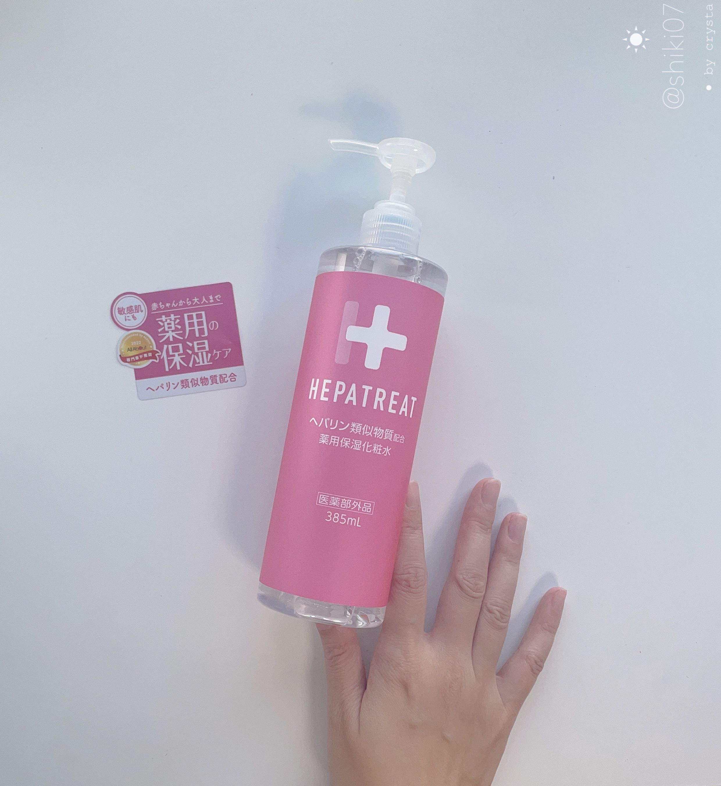 - ヘパトリートは保水有効成分のヘパリン類似物質と肌あれ有効成分のグリチルリチン酸ジカリウムを配合し、8つのフリーを実現。低刺激処方ながら高機能な化粧水です。さらに、薬用化粧水では珍しい大容量ポンプ(385mL)でとても使いやすく、赤ちゃんから大人まで、顔や全身の肌あれ・乾燥に使えます。 ■Wの有効成分 1.ヘパリン類似物質 顔・全身の乾燥を防ぐ 肌の乾燥による肌あれ/あれ性/皮膚を健やかに保つ/肌を整える/あせも/ひび/あかぎれ 2.グリチルリチン酸ジカリウム ニキビを防ぐ/肌をひきしめる/日やけ、雪やけ後のほてりを防ぐ/しもやけ/かみそりまけを防ぐ ■肌にやさしい低刺激処方<8つのフリー> 無香料/無着色/無鉱物油/無動物油/パラベンフリー/アルコールフリー/石油系界面活性剤フリー/シリコンフリー ※パッチテスト済み ※スティンギングテスト済み