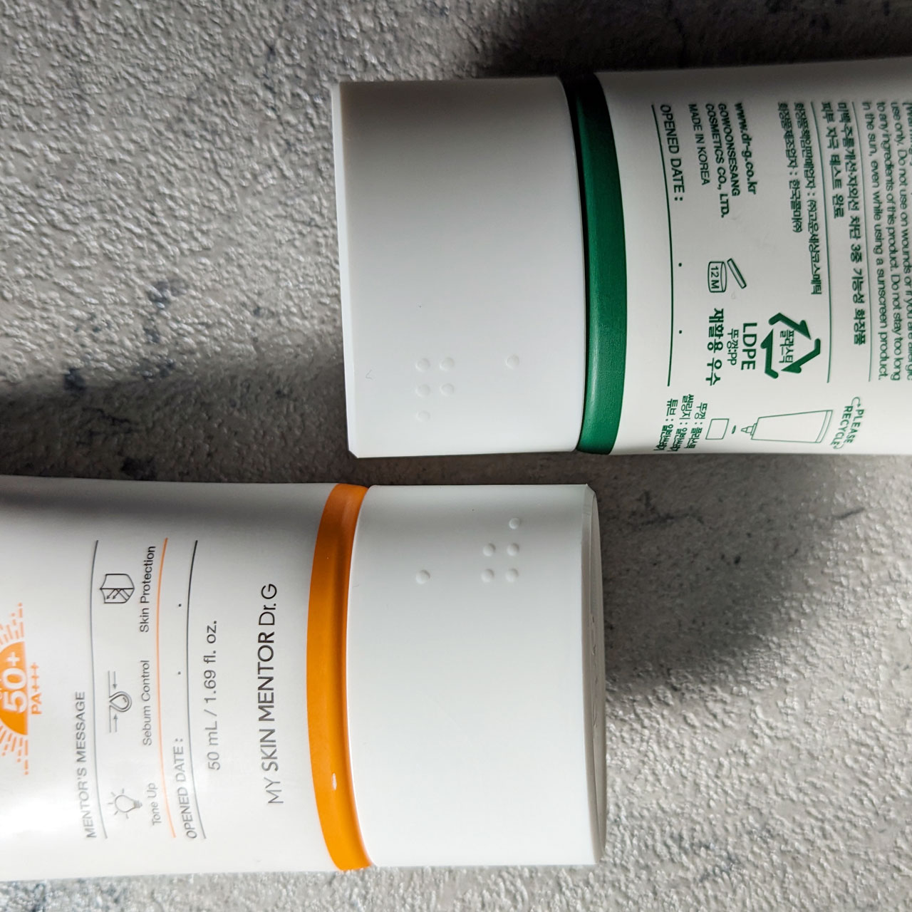 Dr.Gはクリームが本当に使い心地が良くて大好きな韓国のスキンケアブランドです🤍 ブライトニングアップサンプラスはピンクベージュカラーで下地として使うことも◎ 紫外線を肌に吸収せず、焼けない作りになっているそうです🩷 どちらもツボクサ、ドクダミ、プロビタミンDのスキンケア配合でお肌に優しい作りになってあるのが嬉しい😻 日焼け止めってピリピリしたりする事があるのですが、こちらはそんなことも無くとっても使い心地が良くてお気に入りになりました🫶🏻✨️
