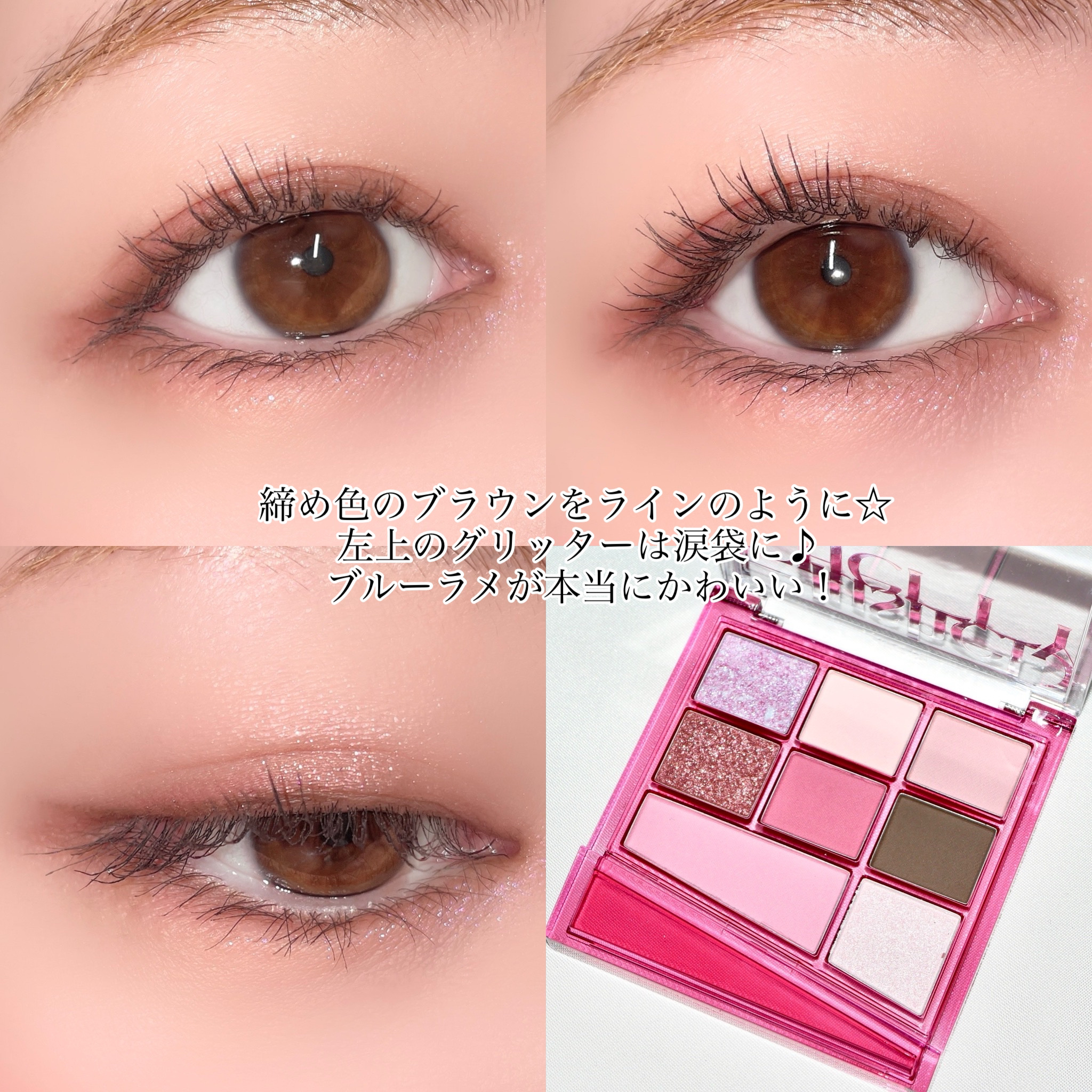 チェリーカラーのパレットも可愛かったし、ウィンターも可愛かった💓 キレイなピンクでポイント使いにすると◎ 結構高発色だから、ナチュラルメイク派さんにはあまりオススメ出来ないかも?😅 暖色系で膨張して見えやすいので、アイラインとまつ毛はブラックにしています。
