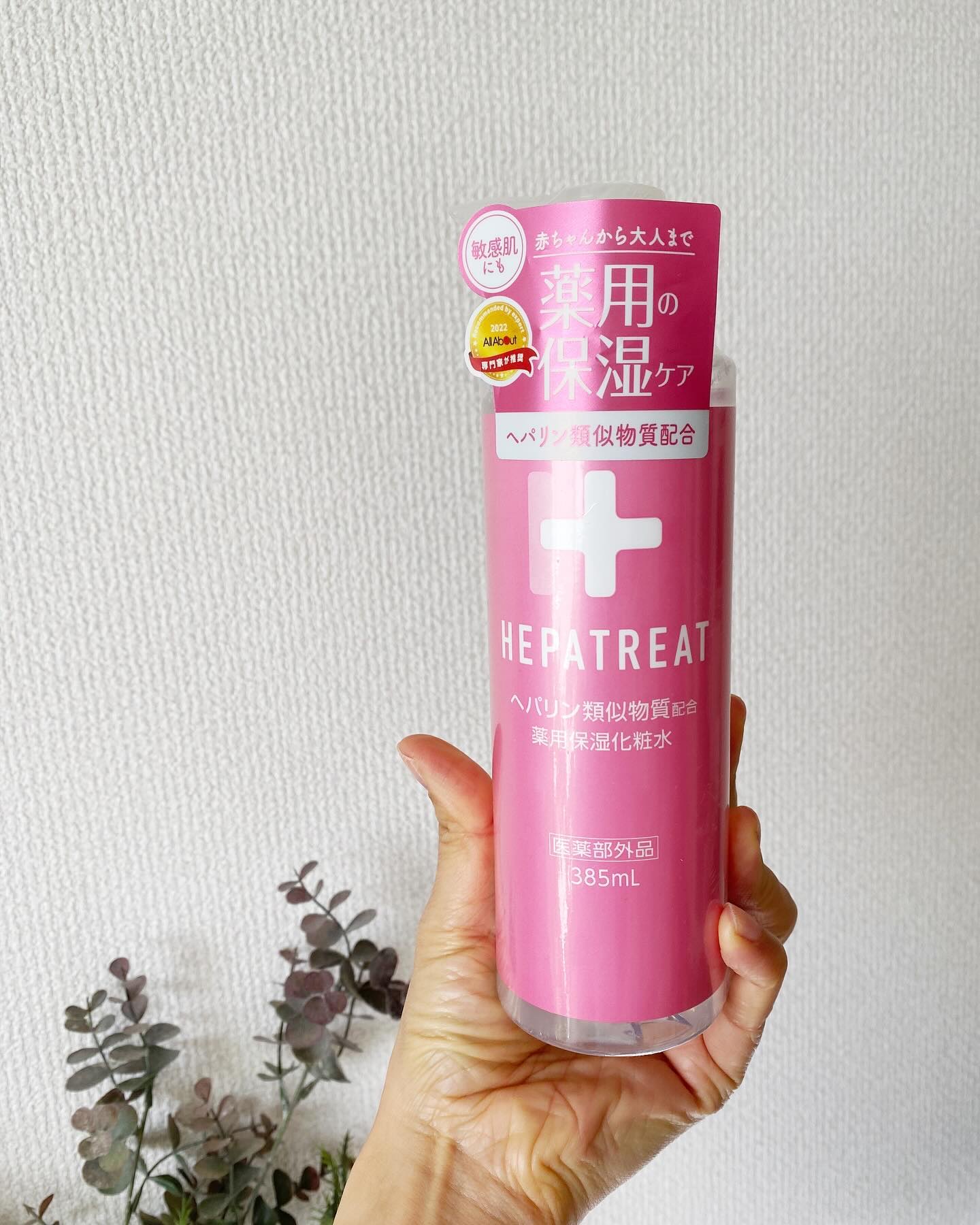 - ヘパトリートは保水有効成分のヘパリン類似物質と肌あれ有効成分のグリチルリチン酸ジカリウムを配合し、8つのフリーを実現。低刺激処方ながら高機能な化粧水です。さらに、薬用化粧水では珍しい大容量ポンプ(385mL)でとても使いやすく、赤ちゃんから大人まで、顔や全身の肌あれ・乾燥に使えます。 ■Wの有効成分 1.ヘパリン類似物質 顔・全身の乾燥を防ぐ 肌の乾燥による肌あれ/あれ性/皮膚を健やかに保つ/肌を整える/あせも/ひび/あかぎれ 2.グリチルリチン酸ジカリウム ニキビを防ぐ/肌をひきしめる/日やけ、雪やけ後のほてりを防ぐ/しもやけ/かみそりまけを防ぐ ■肌にやさしい低刺激処方<8つのフリー> 無香料/無着色/無鉱物油/無動物油/パラベンフリー/アルコールフリー/石油系界面活性剤フリー/シリコンフリー ※パッチテスト済み ※スティンギングテスト済み