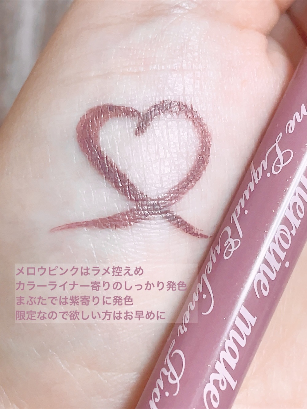 - 派手過ぎず上品に輝く大粒のグリッターパールが、キラめく目元を演出! 夜まで落とさない 超!輝きアイライナーが数量限定で登場 ■史上初※1!キラっと輝く 大粒グリッターパールを配合 派手すぎず上品に輝く大粒グリッターパールが、キラめく目元を演出! ※1ヒロインメイク 筆ペンライナー内で。 ■パール専用・新リキッドコントロール機能を採用 輝き&高発色な濃密ラインが、目尻までかすれずに一気に描けます。 ■筆先0.1mm!なめらか国産極細筆 絶妙なコシのある毛筆だから目尻のハネやまつ毛の隙間など、細部まで狙い通り。 ■夜まで美しく!ウォータープルーフ処方 耐久性の高い成分をオリジナル比率でブレンドした耐久処方。 涙・汗・皮脂・こすれに強く、落とすまで美しいラインをキープします。 ■濃密&高発色!ロングラスティングカラー 伸縮性の高い密着成分をダブルで配合。ピタッと定着し、ワンストロークで色ムラのない、濃密&高発色なラインが描けます。 ■にじまないのにお湯でオフ にじみに強いのに、お湯で簡単にオフ出来ます。 *落ちにくく感じる場合は洗顔料(石けん等)をご使用ください。 ■抜群の速乾性 速乾性に優れ、メイク中のよれ、にじみに、まばたきにも負けません。 ■6種類の美容液成分配合 ・ヒアルロン酸 ・コラーゲン ・野バラエキス※2 ・パンテノール ・リピジュア®※3 ・センブリエキス ※2 カニナバラ果実エキス ※3 ポリクオタニウム - 51