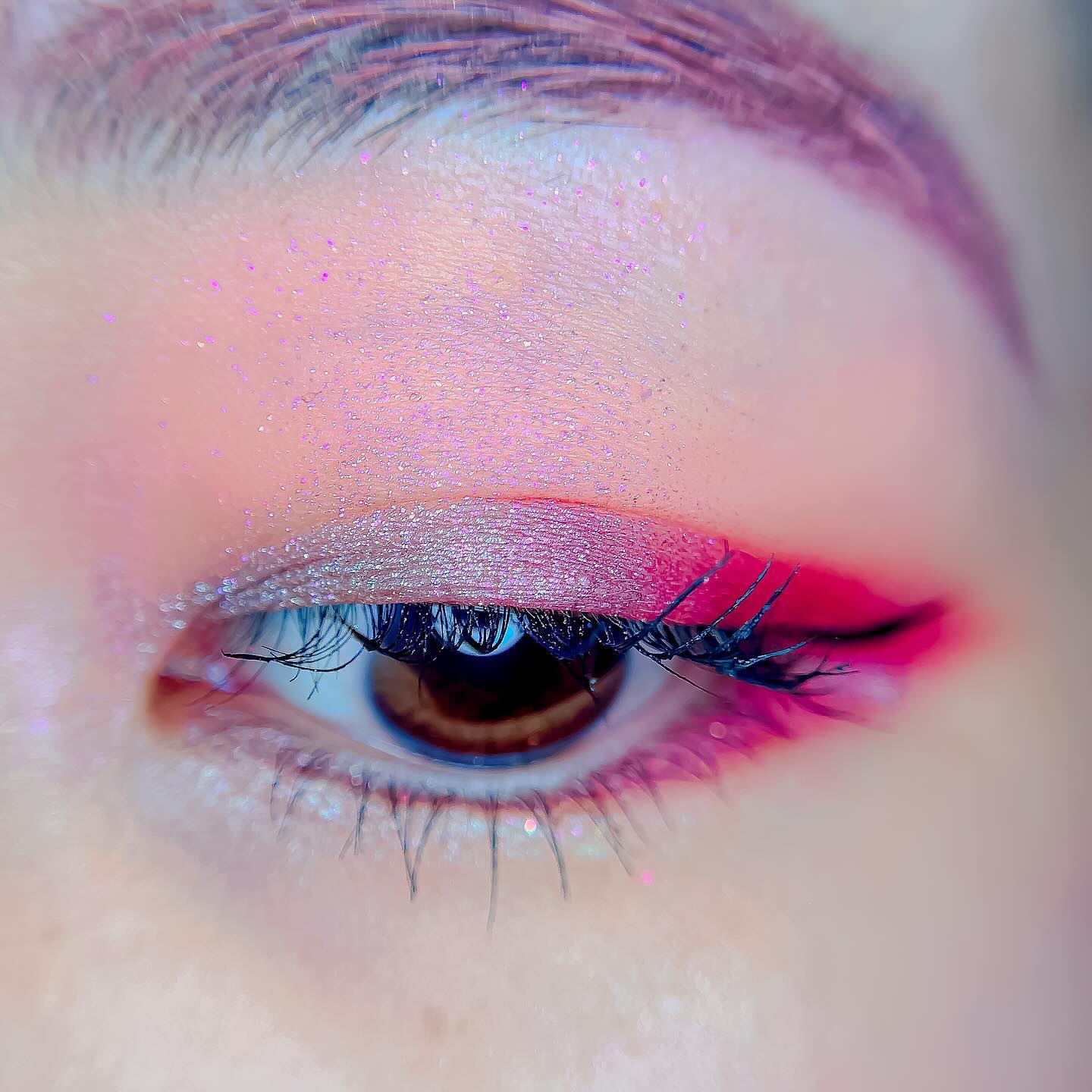 ピンクにグレージュも良いですね👌💗 今日は可愛らしい感じにしてみました💕 上下瞼黒目〜目頭側にラメを塗ってキラキラさせております🤩 目尻はマットのピンクを濃いめに重ねて💗 グレージュのアイライナーと相性◎