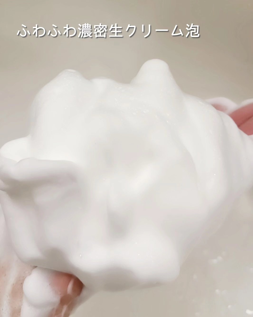 - たっぷりと含まれた良質な保湿成分を巡らせ、ハリのあるもっちり肌へと導く新感覚の生せっけん。 うるおいをたっぷりと抱えたなめらかな生せっけんが、肌に負担の少ない使い心地で汚れをオフ。 洗浄成分には、赤ちゃん用のシャンプーやボディソープなどに含まれることが多いコカミドプロピルベタインといった肌のことを考えた成分を使用しています。更に、ビタミンE入りのカプセル*配合で、うるおいだけでなく透明感もケアし、みずみずしい素肌へと導きます。 肌へ寄り添いとことん向き合って徹底的にこだわりぬいた、とろけるようなクリーム状のテクスチャが特徴の生せっけんです。 *保湿成分