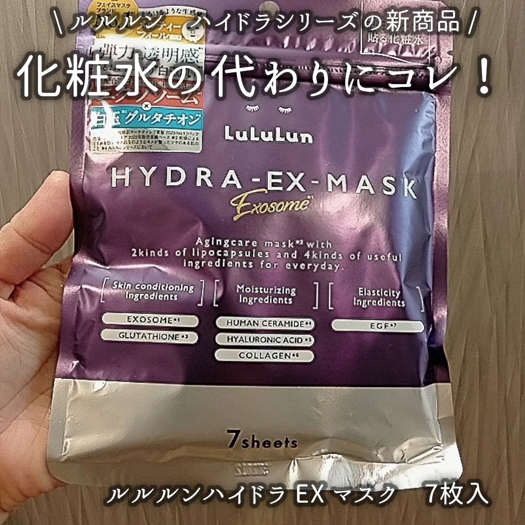 - ルルルンハイドラシリーズから新登場。うるおいにプラスするのは、「エクソソーム*1」。先端再生テクノロジーにインスパイアされた、デイリーエイジングケア※1マスクです。白玉※2グルタチオン*2をプラス配合し、弾力・透明感※3・つやめきのあるなめらかなお肌へ導きます。 (*1 整肌成分 ヒト脂肪由来間葉系細胞エクソソーム *2 整肌成分 グルタチオン、アルブチン、レシチン ※1 年齢に応じて肌へうるおいと弾力を与えるケアのこと ※2 白玉のようなキメが整ったツヤのある肌のこと ※3 うるおいを与えて、乾燥によるくすみを防ぐ)