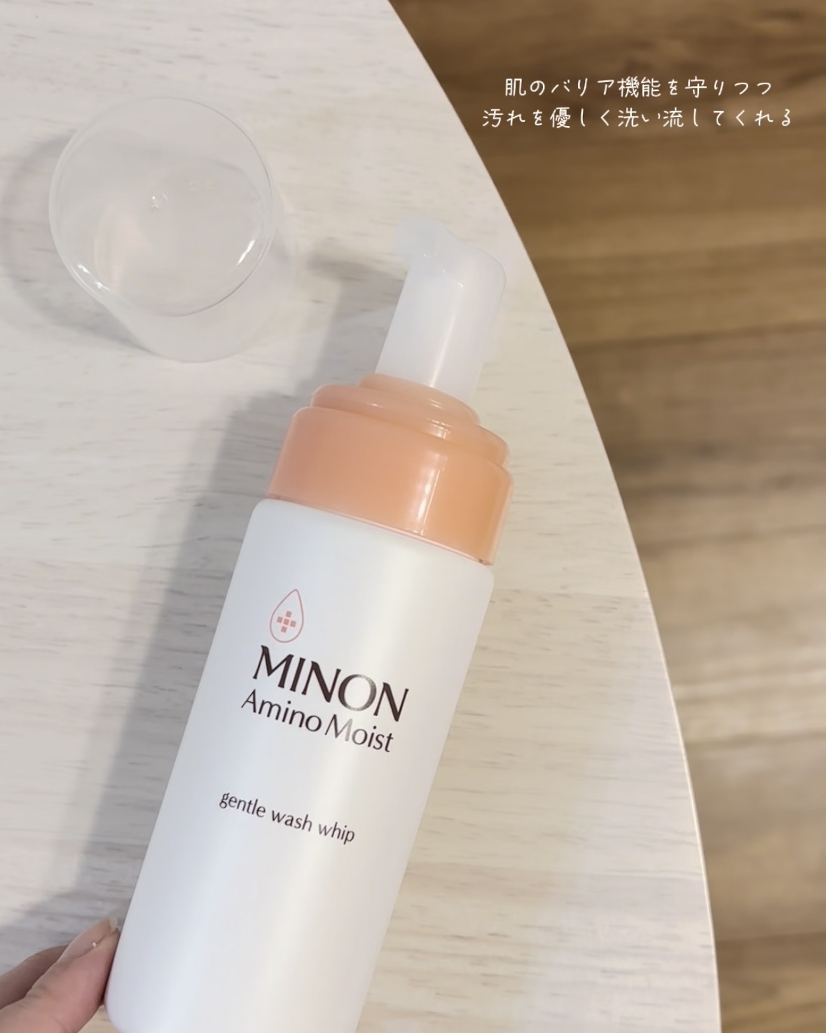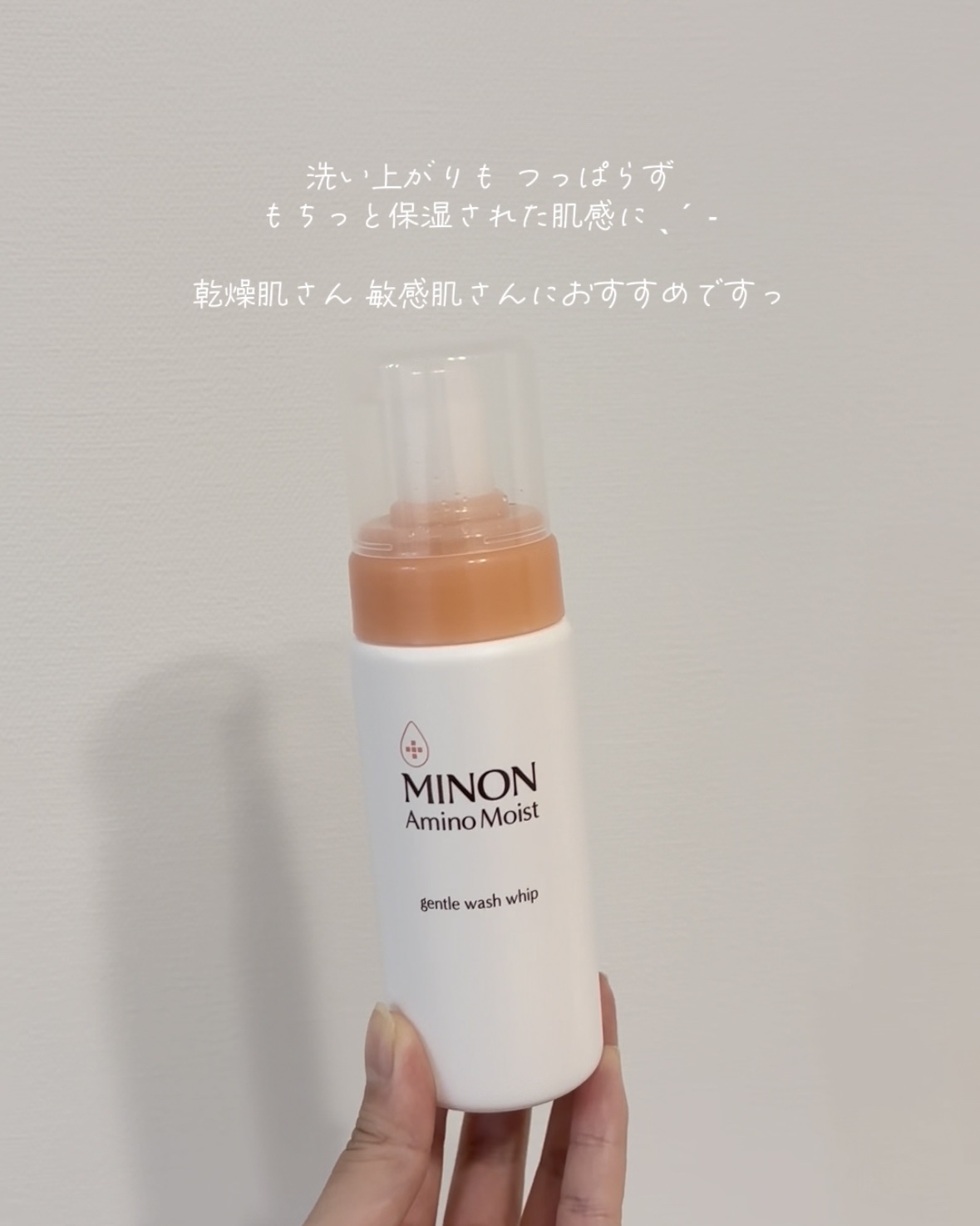 泡で出てくる洗顔ってめちゃ楽で好き🫶 MINON は、化粧水とミルクが凄く良かったから洗顔も買ってみた✨ 洗い上がりは、アミノ酸系洗顔のそれ。つっぱり感は全くなく、良く言えばしっとり。悪く言えば若干ぬめぬめ。 どちらかというと、乾燥しやすい季節向きの洗顔かな🙆♀️