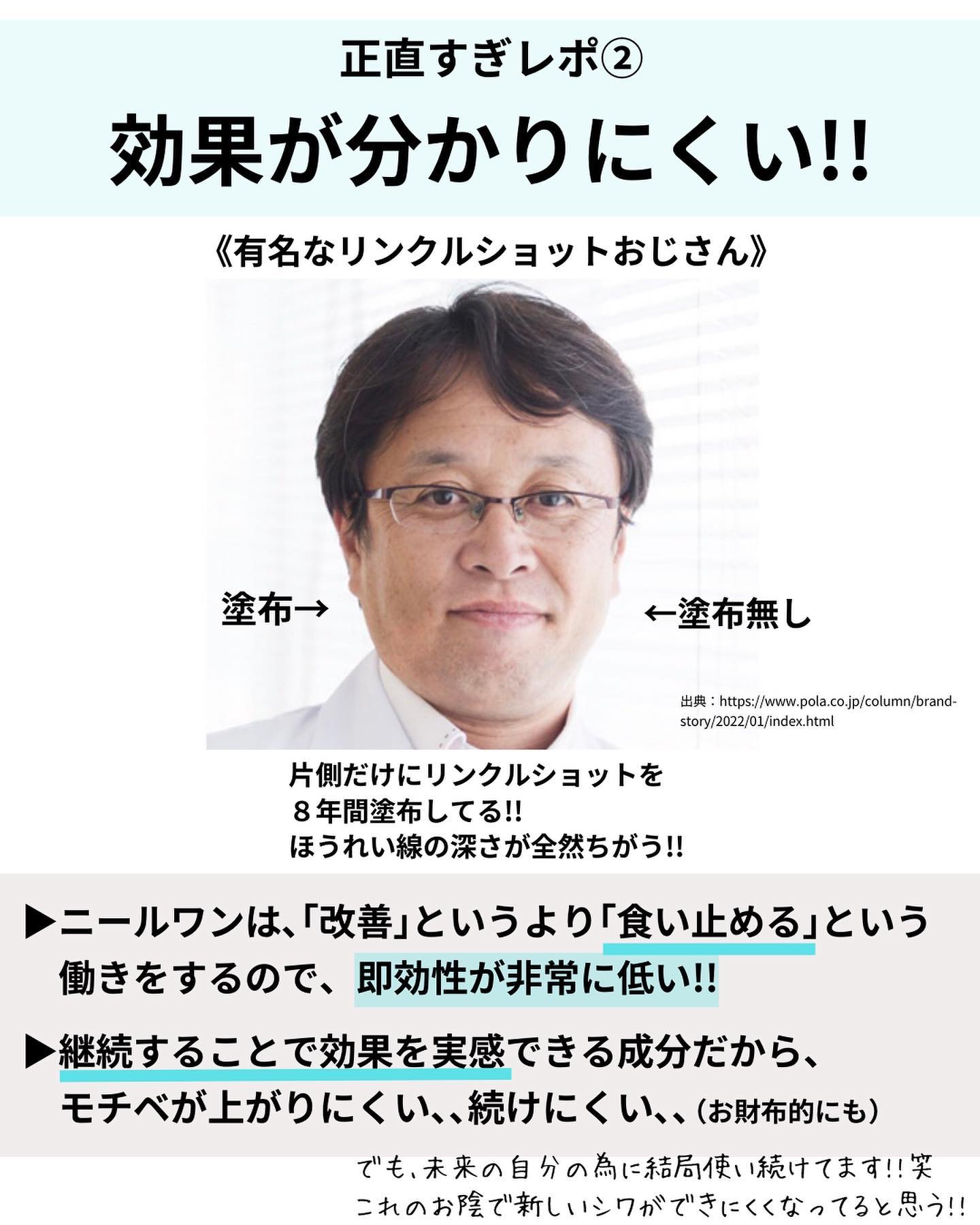 シワ改善といえばやっぱりPOLA これまでの部分的な定着ジワではなく顔全体に存在する【散在シワ】に着目。 洗顔後にぬる先行美容液で、みずみずしいテクスチャ 顔全体に塗布するタイプ🌱 シワ改善有効成分として承認されている【ニールワン®】 水に溶かすとゆるやかに分解が進むという弱点があったそう