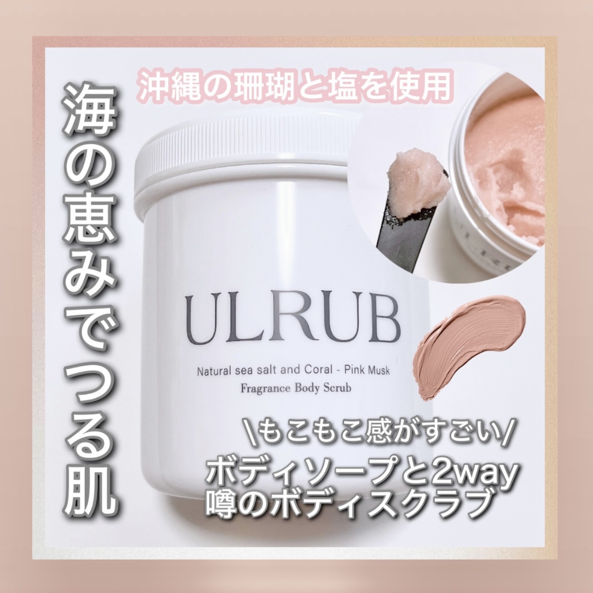 ベスコス受賞✨SNSで話題のブランド「ULRUB (ウルラブ)」🩷 沖縄の海底で採取された天然サンゴの粉末がお肌の汚れを吸着 2年間で51万個も売れた大人気なウルラブボディスクラブと同じ香りのボディクリーム🩷