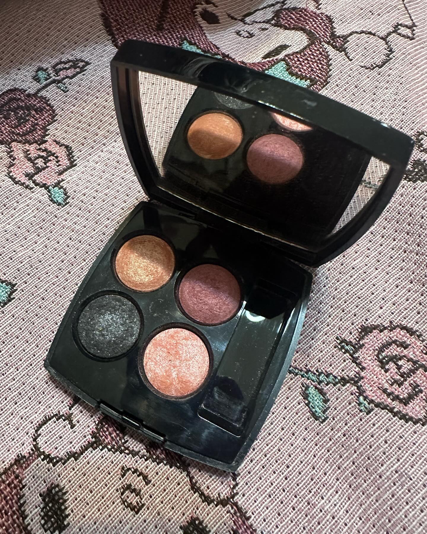 CHANEL秋コスメ✨レキャトルオンブルブトン限定4色の中から心を奪われたのは…🌟239ブトンバロック🌟パープルラメの圧倒的な輝きに心臓を撃ち抜かれた💘他のカラーも上品なパール感で捨て色ゼロ。メタリック・コッパー・ゴールドの組み合わせが可愛す...
