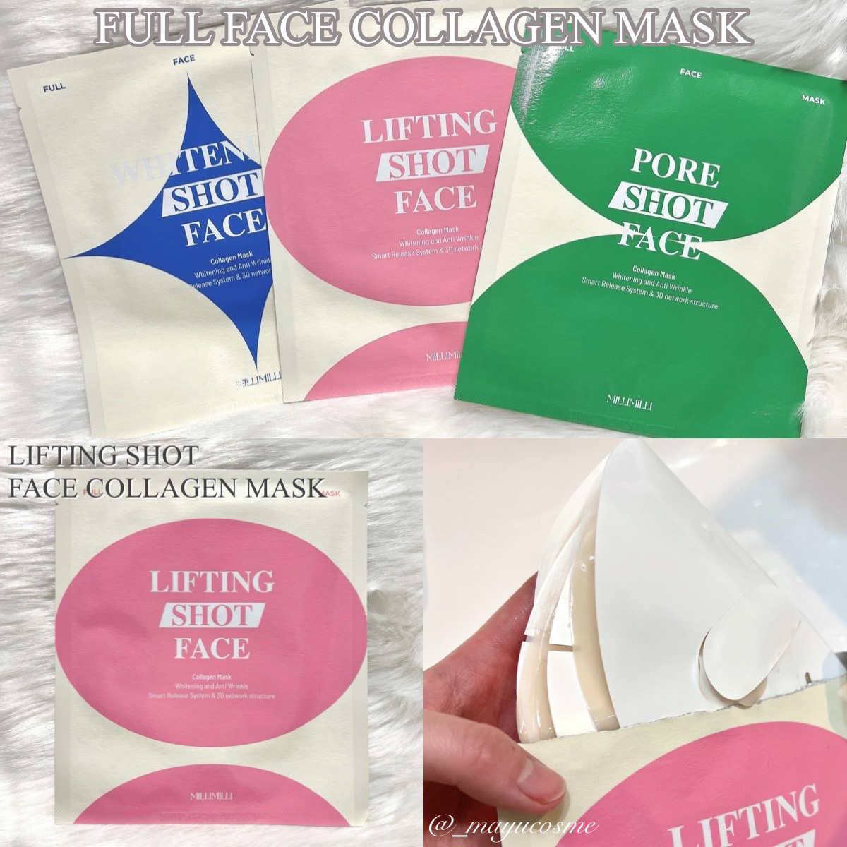光彩マスク&タンパク質アンプル✨ 毛穴や乾燥など様々な肌悩みにアプローチするミリミリーのアイテムを使った、”光彩肌“の作り方をご紹介します🫧 光彩マスクを使用する前にタンパク質アンプルを先に塗布する (3~5回くらいよく振ってから使ってね!) マスクパックを選んで顔に付ける🧏🏻♀️ マスクは肌悩みに合わせて選ぶのがオススメ! 少なくとも2時間、または寝る前につけて起きたらはがす🐑🌙 このマスクはハイドロゲルシートになっていて、時間が経つにつれてだんだん透明になってくるのが特徴です🫶🏻 ぜひぷるぷるのマスクパックを体験してみてください🥹